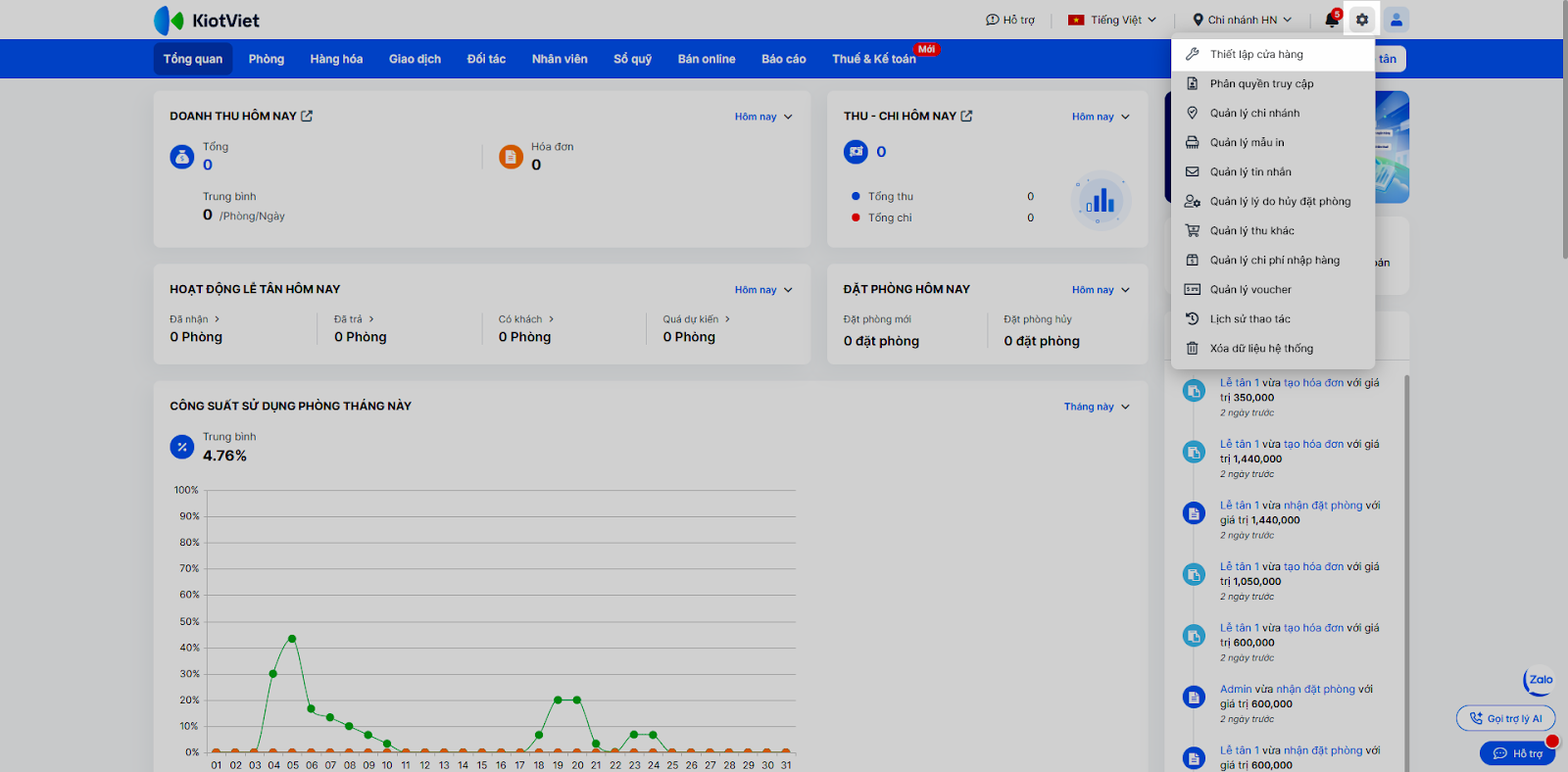 - Vào Thiết lập → Thiết lập cửa hàng.