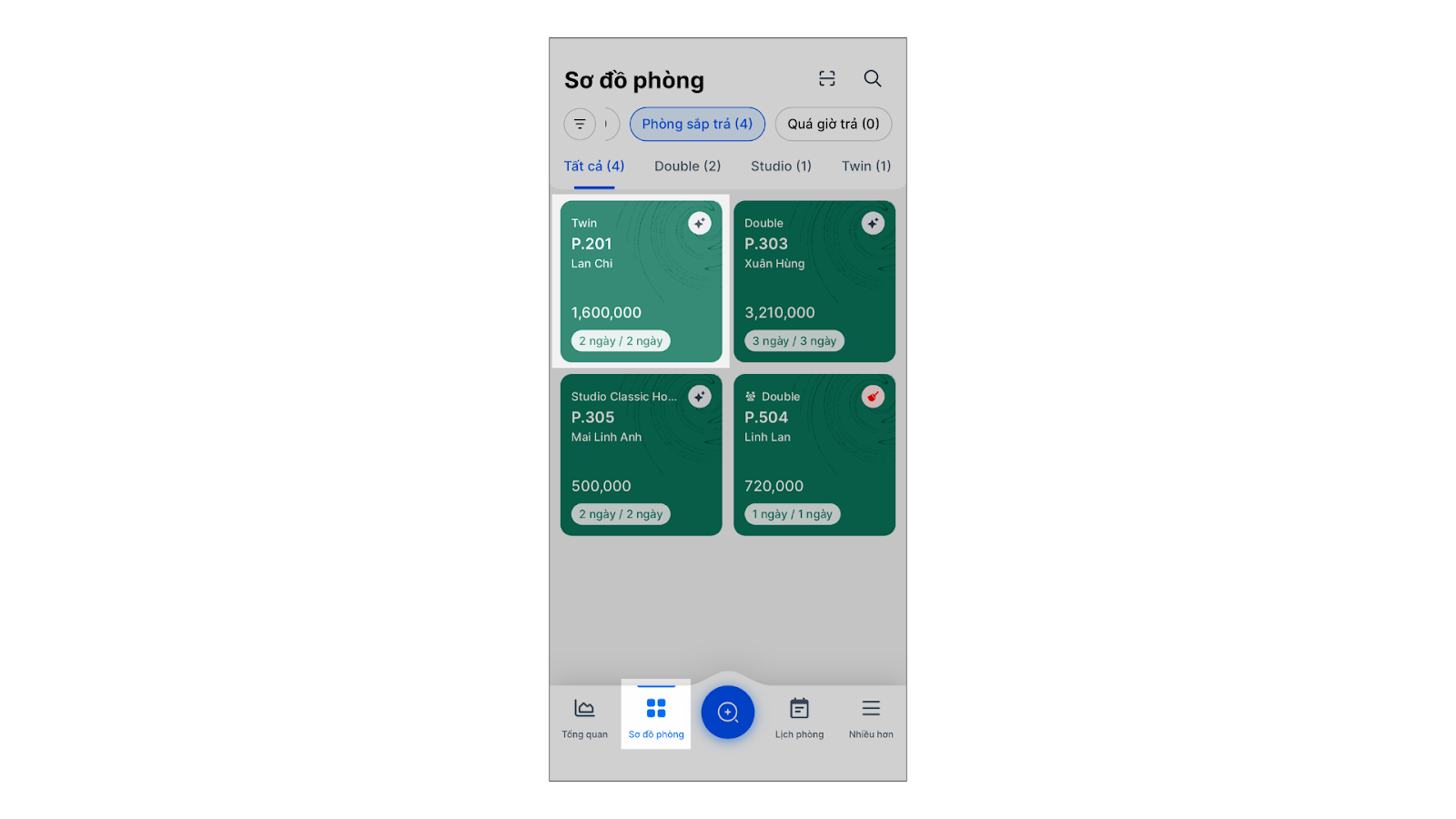 - Chạm vào phòng đang sử dụng trên màn hình Sơ đồ phòng.
