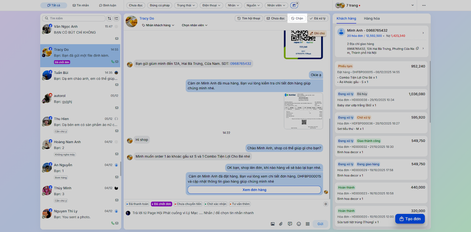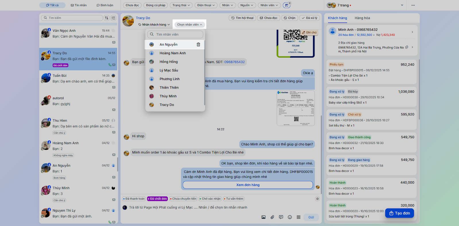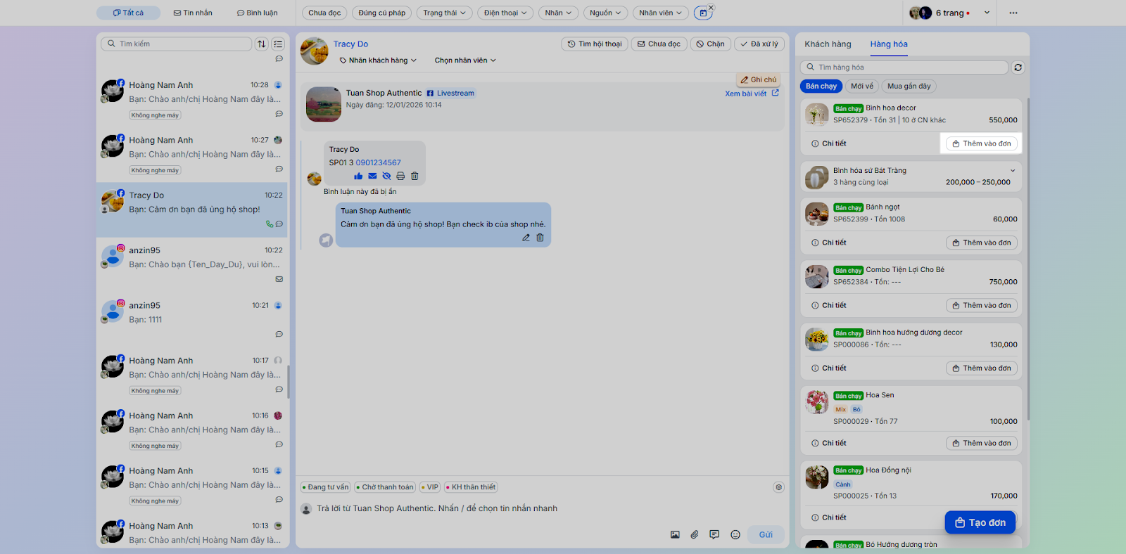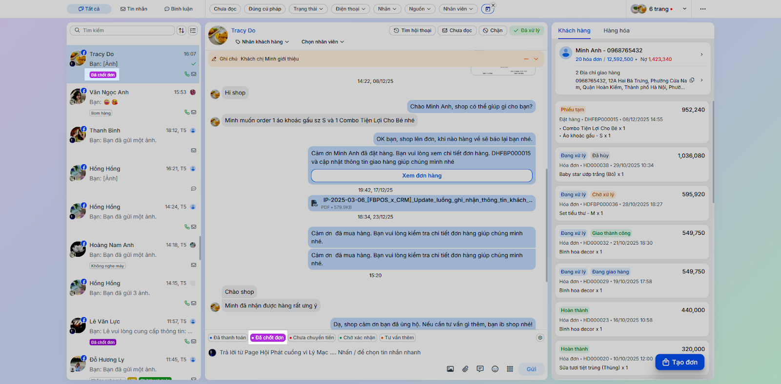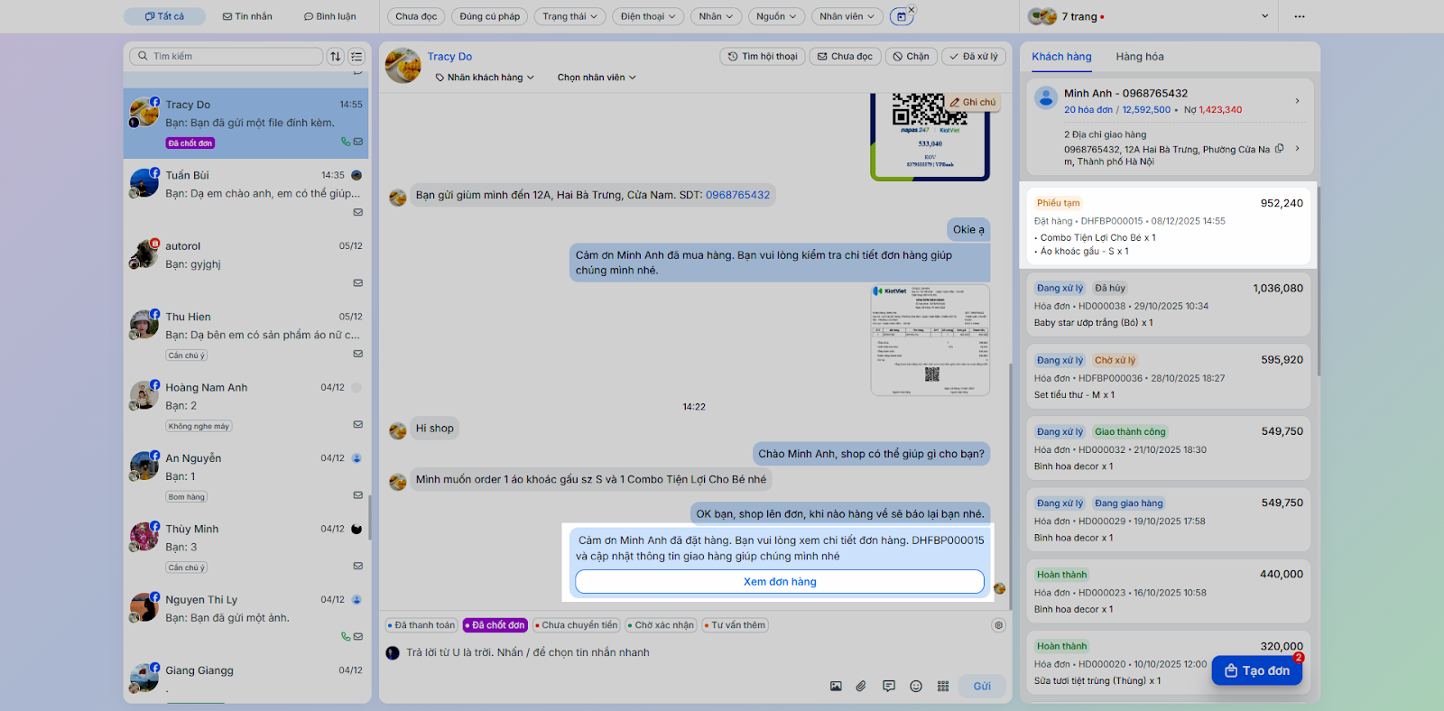 - Tình huống: Nhân viên chốt đơn ngay trong quá trình chat mà không cần chuyển sang ứng dụng bán hàng khác.