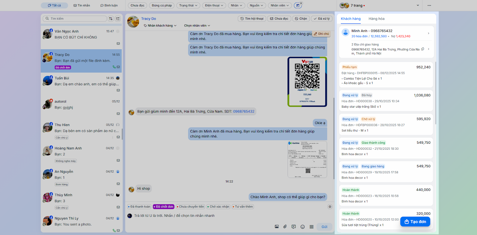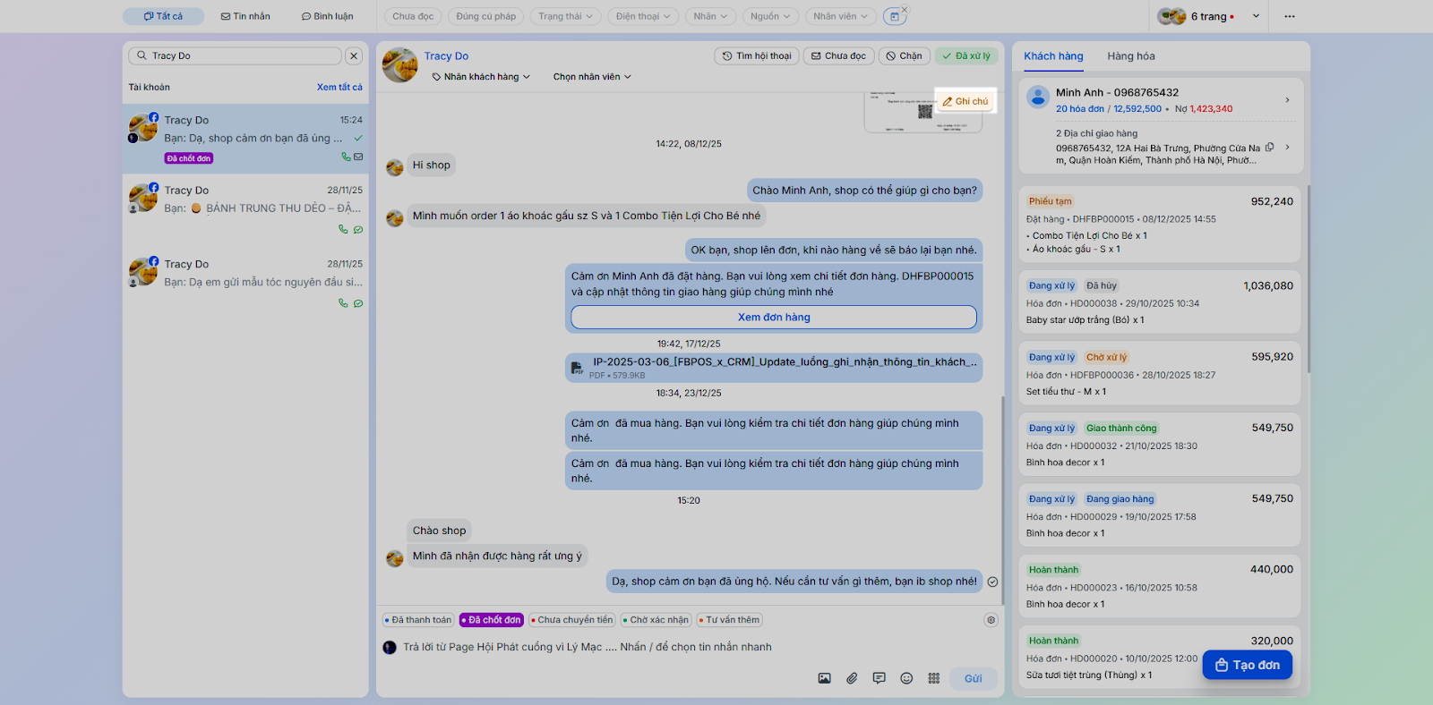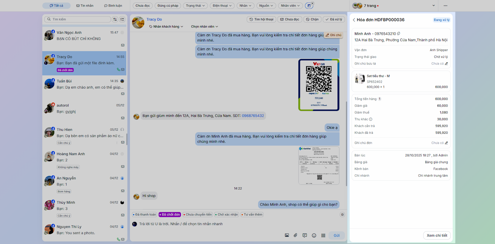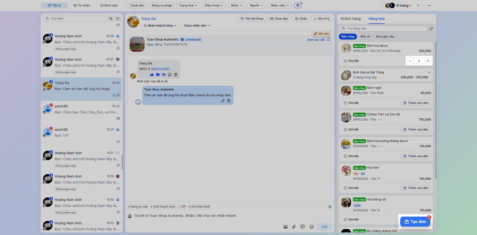 - Tình huống: Nhân viên chốt đơn ngay trong quá trình chat mà không cần chuyển sang ứng dụng bán hàng khác.
