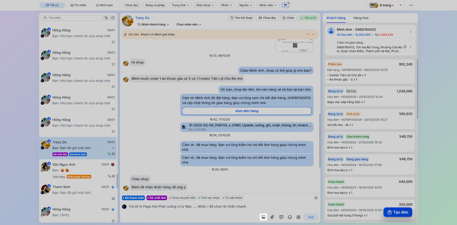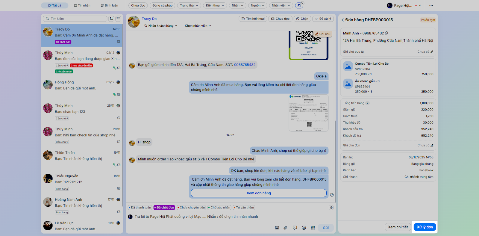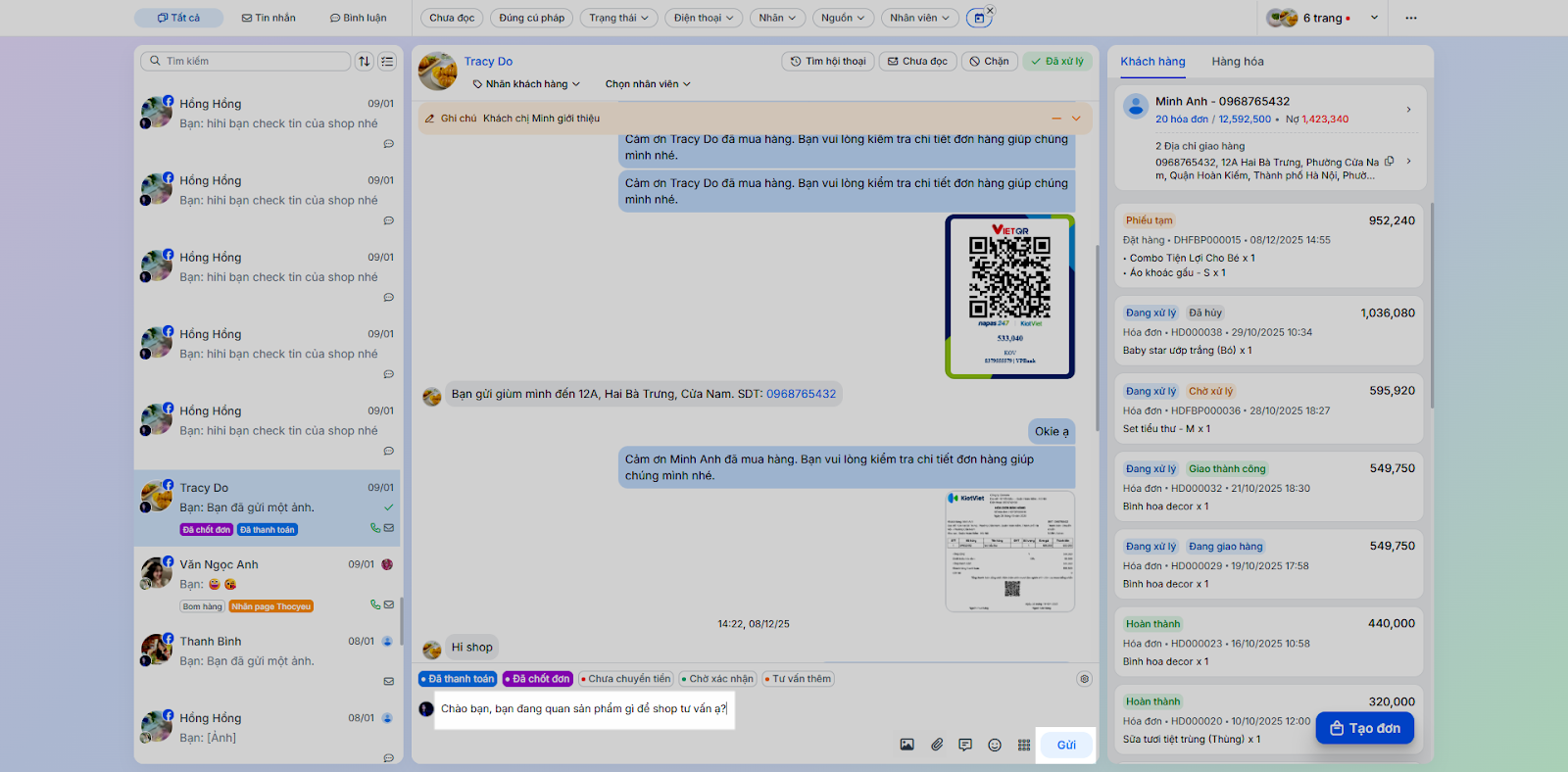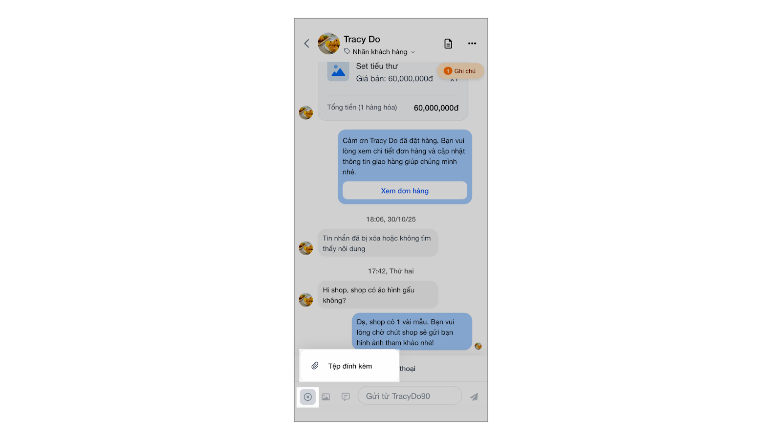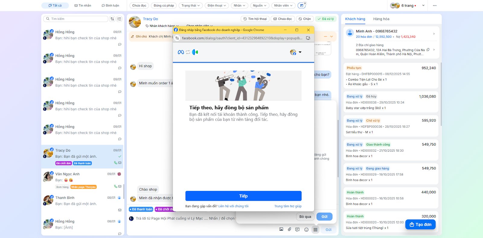 - Tình huống: Nhân viên chốt đơn ngay trong quá trình chat mà không cần chuyển sang ứng dụng bán hàng khác.