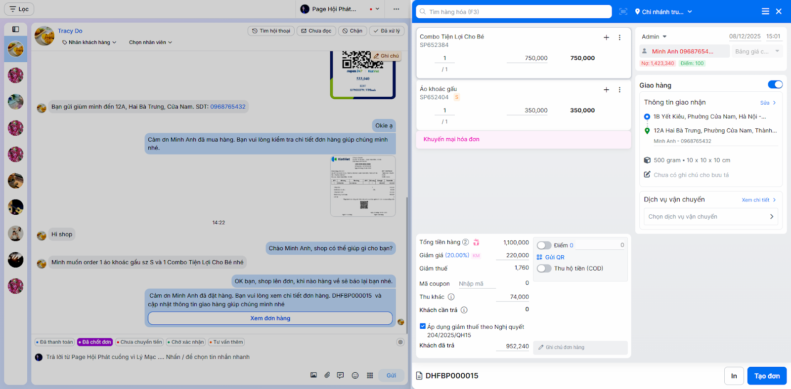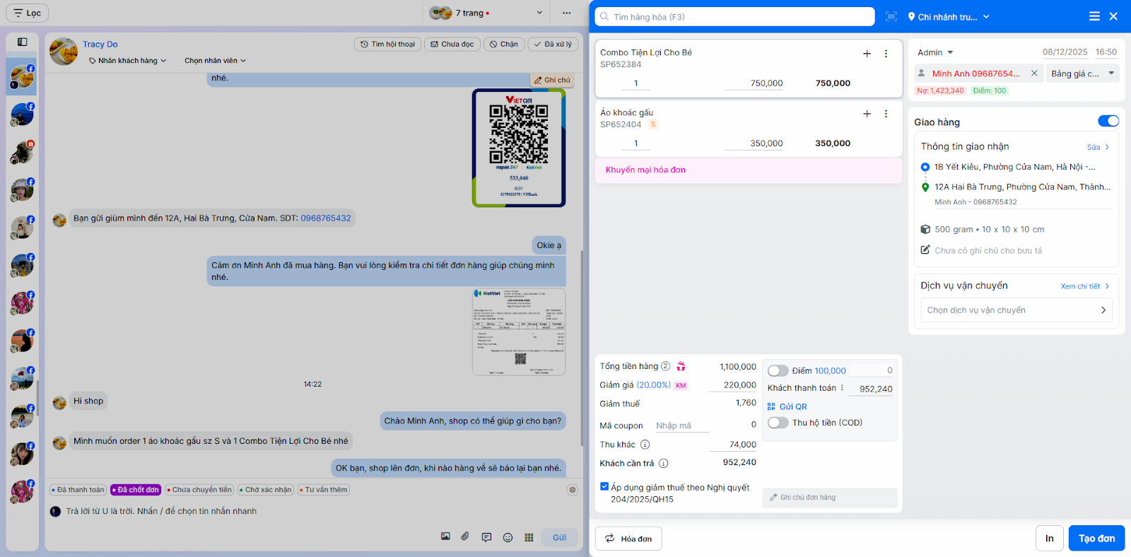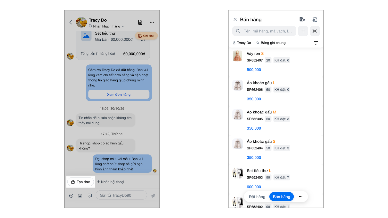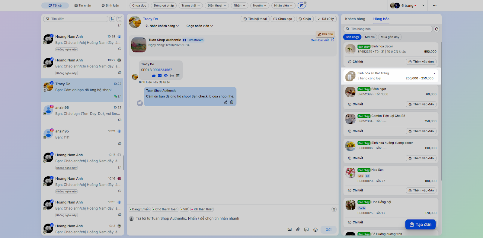 - Tình huống: Nhân viên chốt đơn ngay trong quá trình chat mà không cần chuyển sang ứng dụng bán hàng khác.