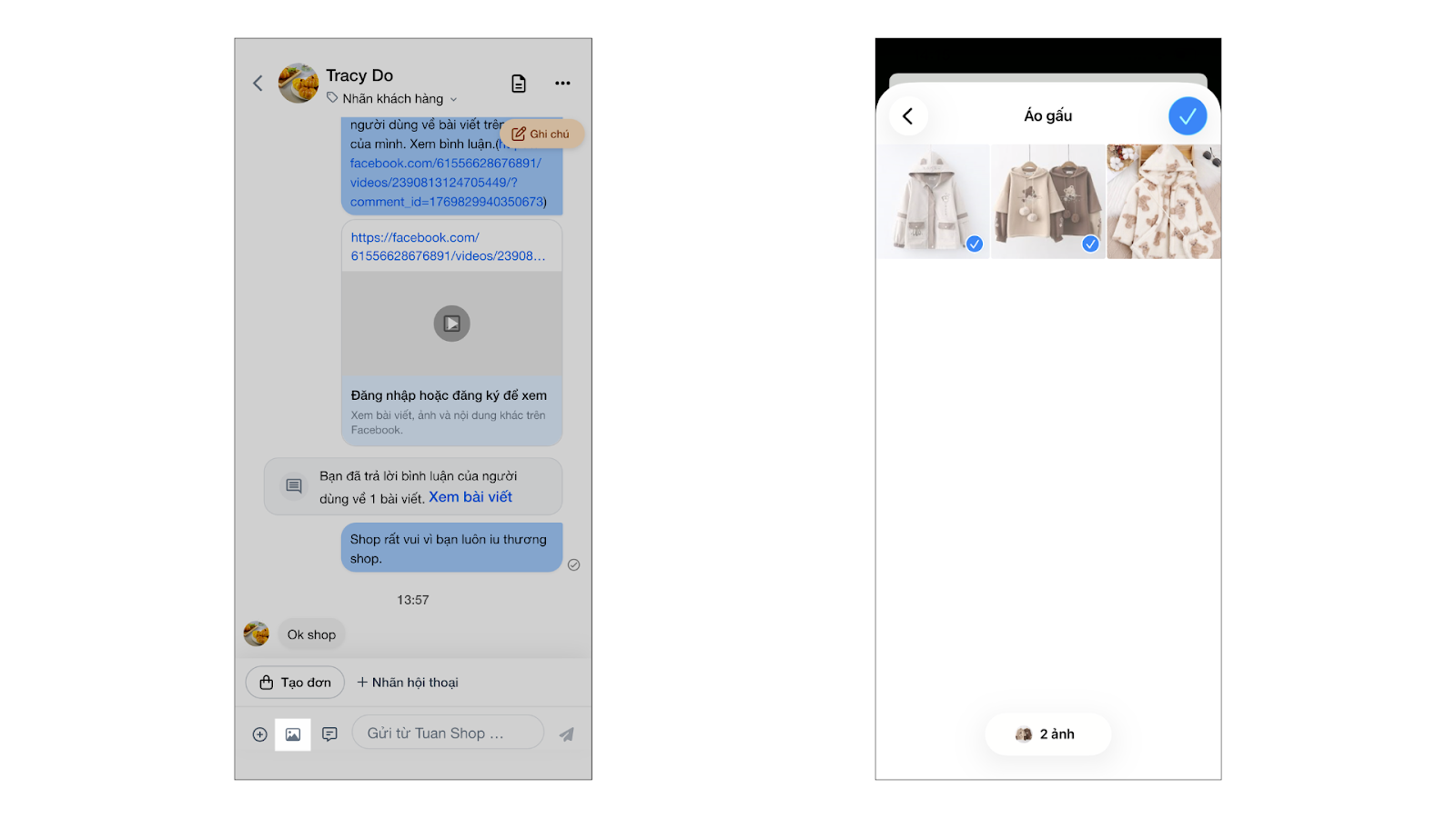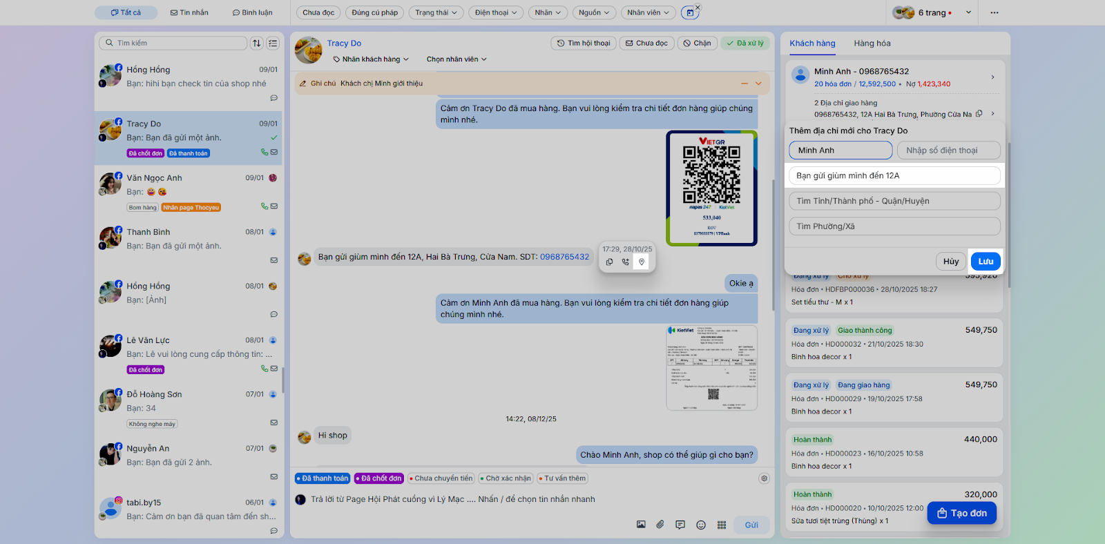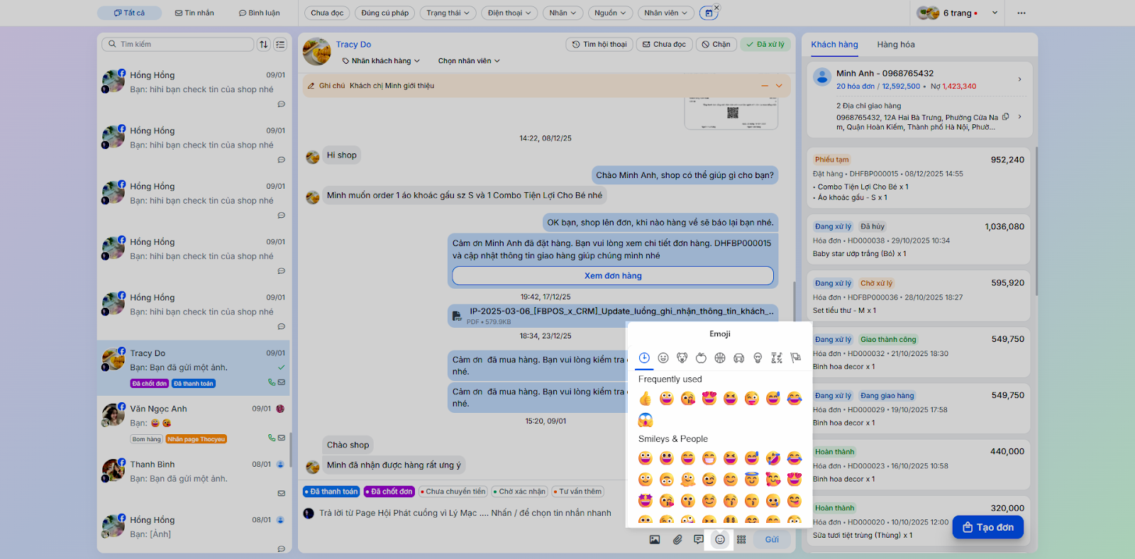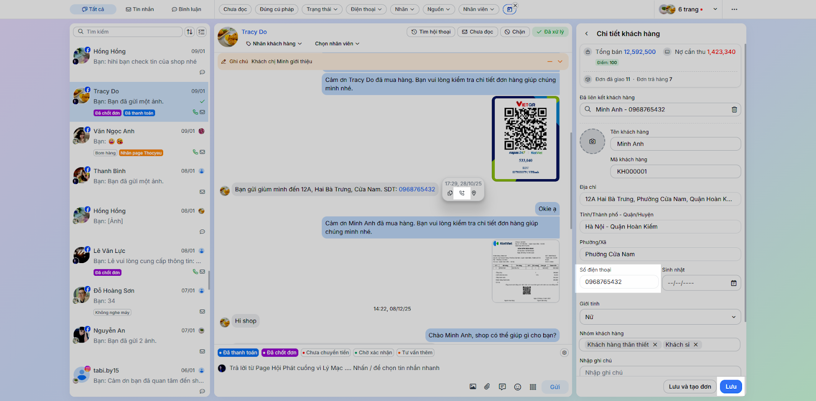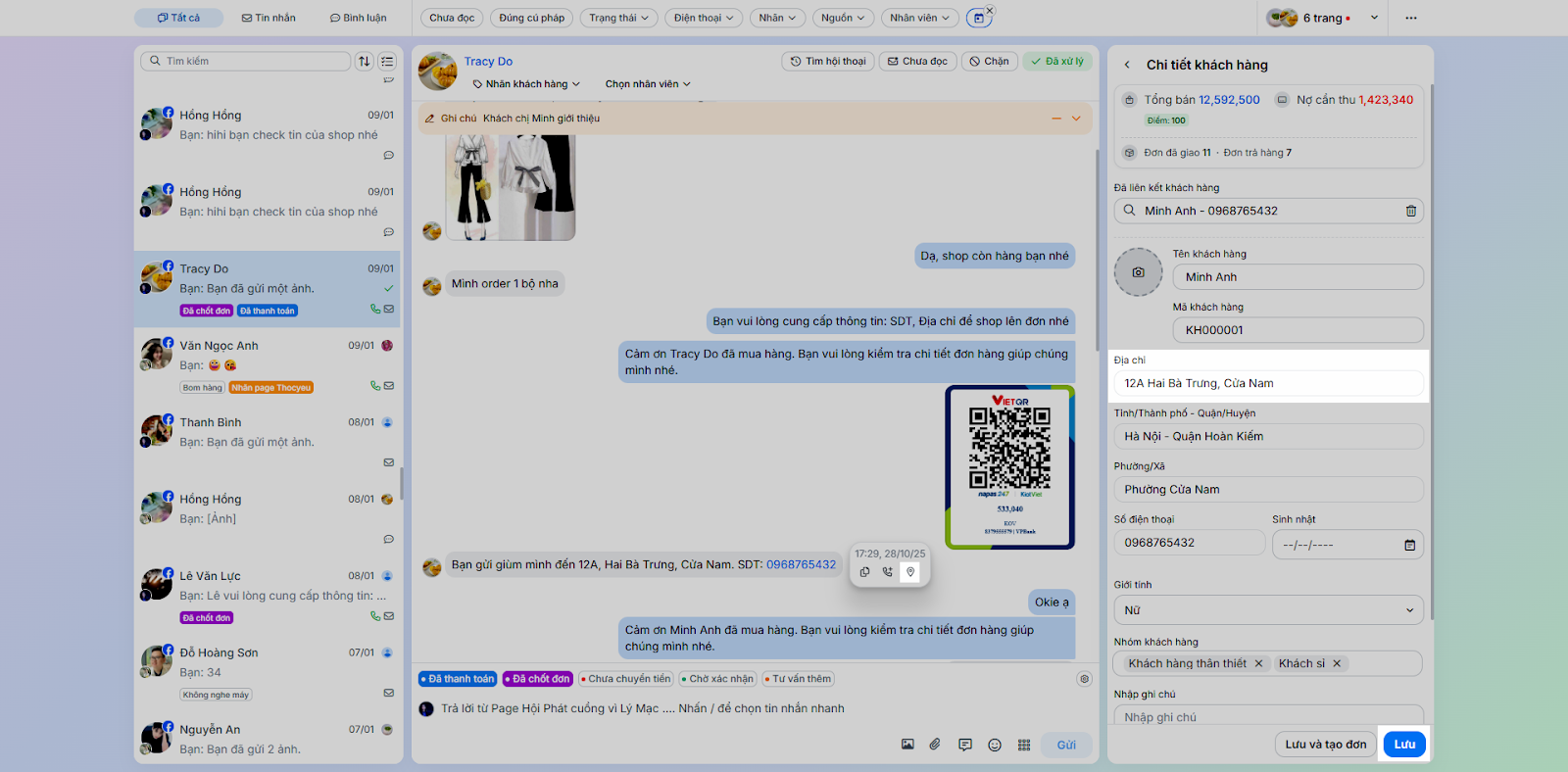- Tình huống: Nhân viên chốt đơn ngay trong quá trình chat mà không cần chuyển sang ứng dụng bán hàng khác.