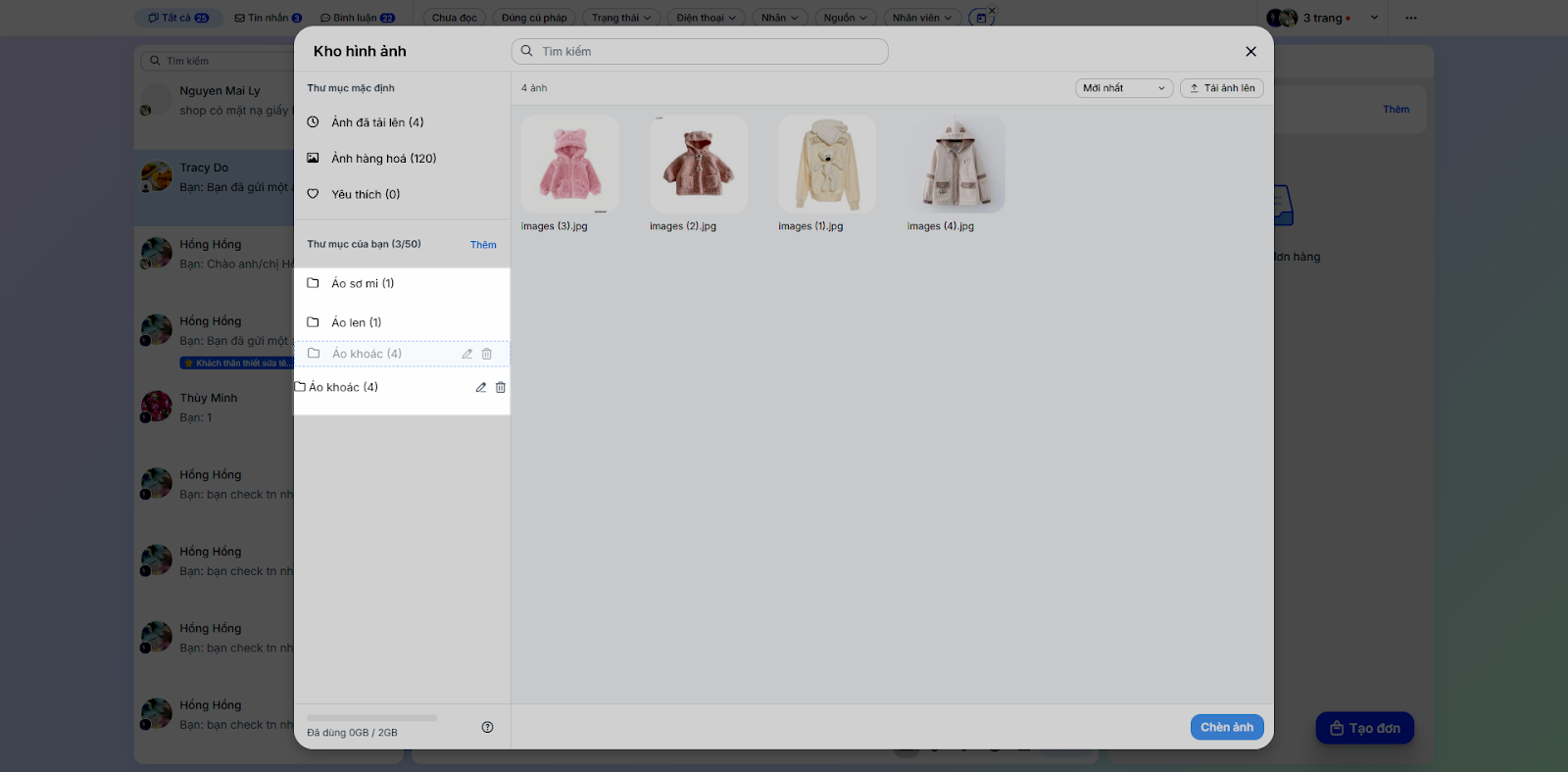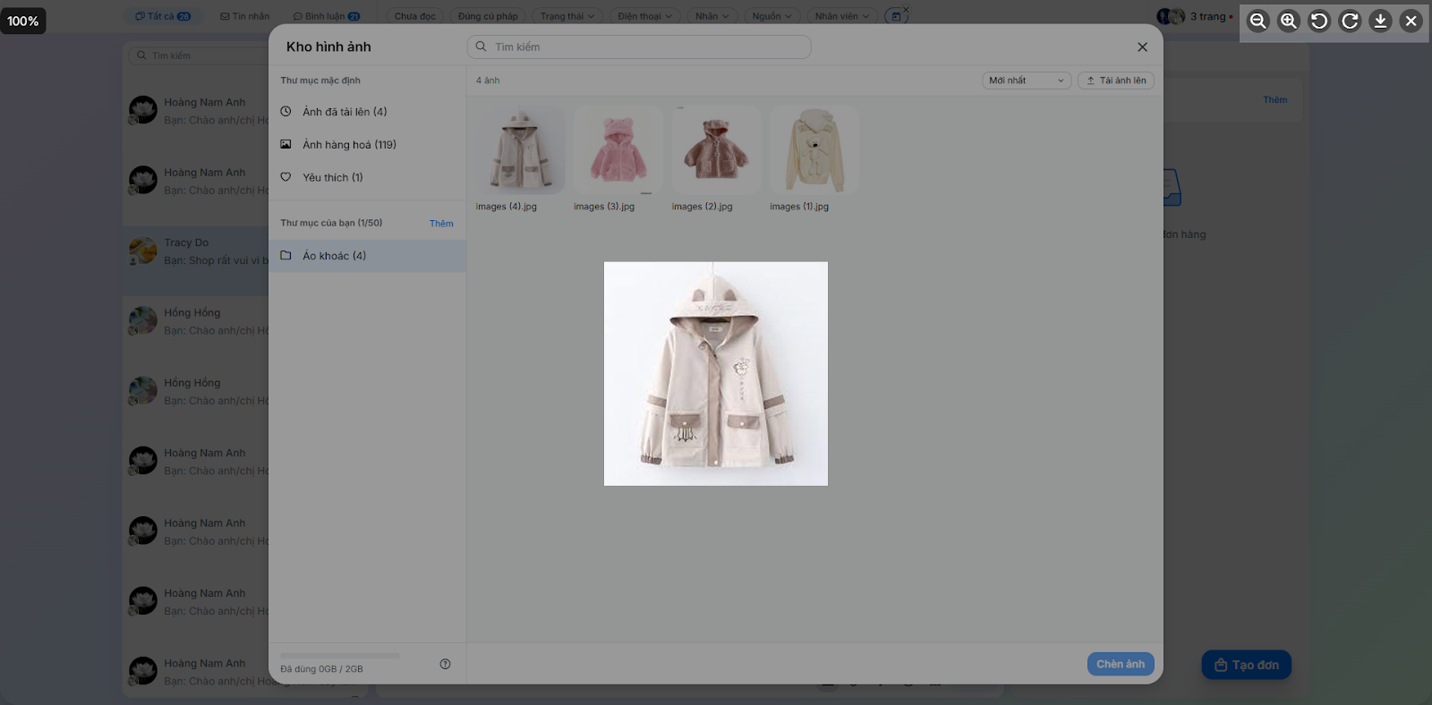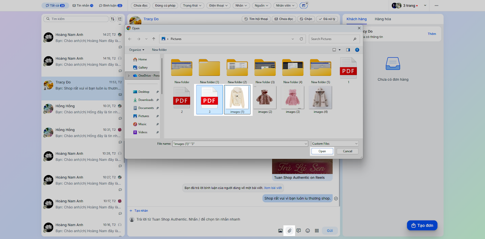 - Gửi hình ảnh: Để gửi hình ảnh cho khách, bạn thực hiện như sau: