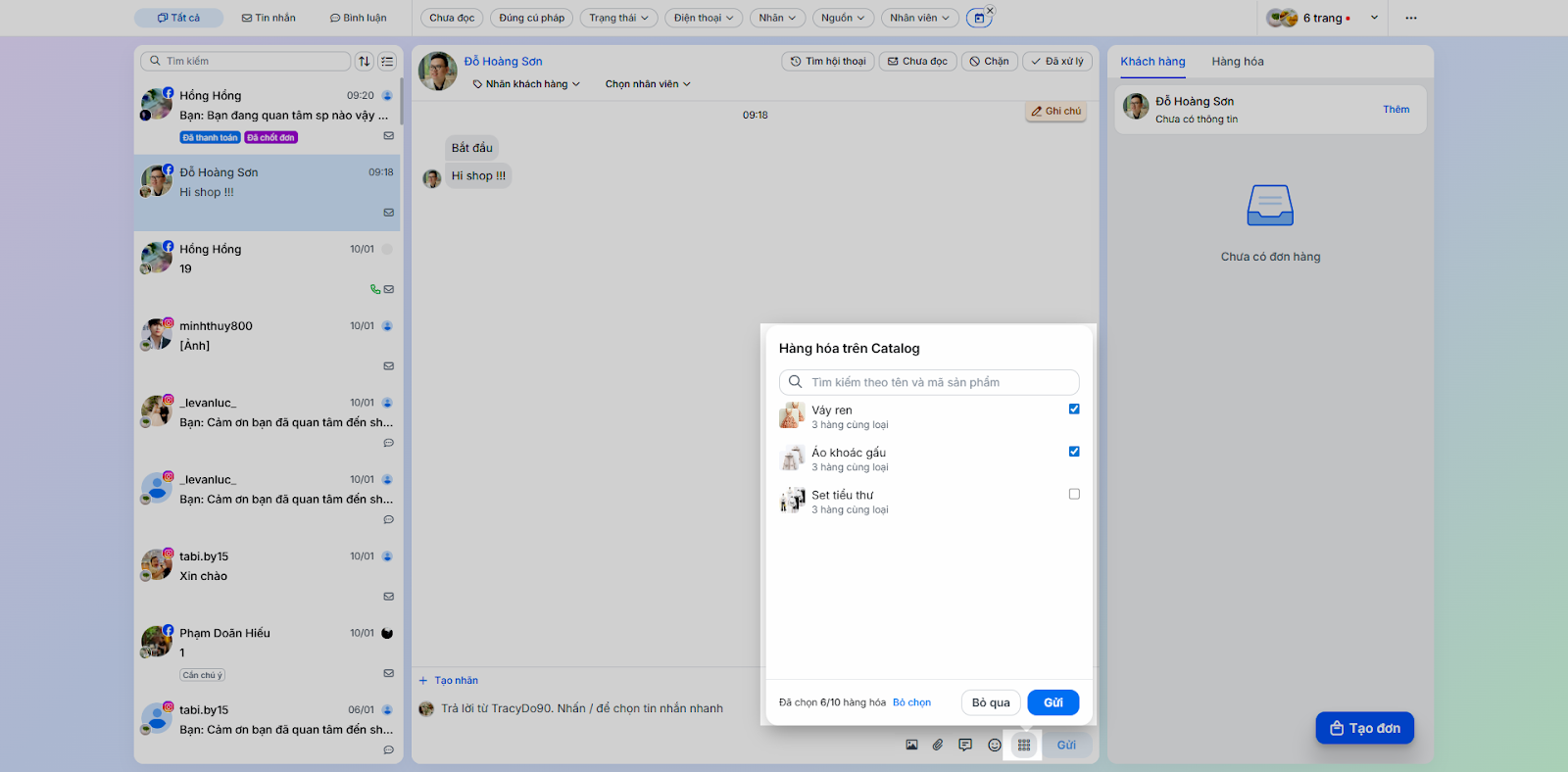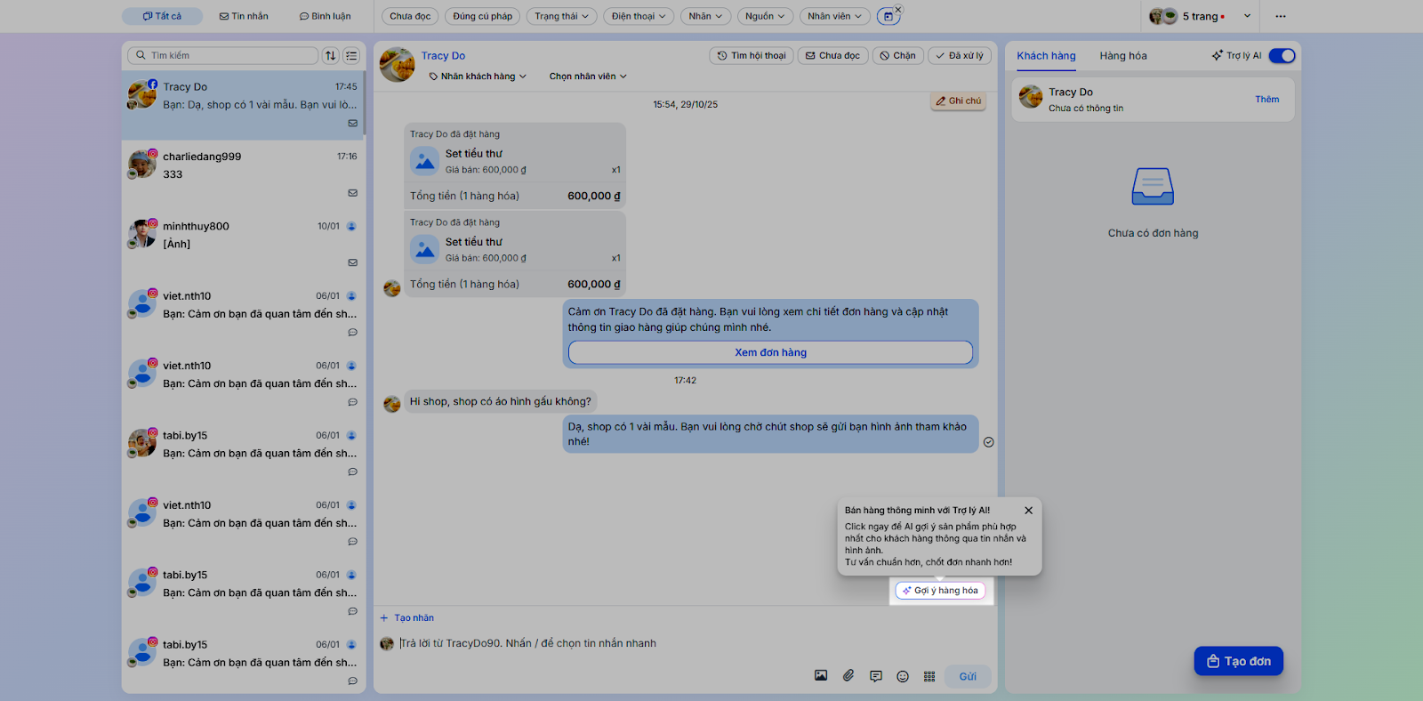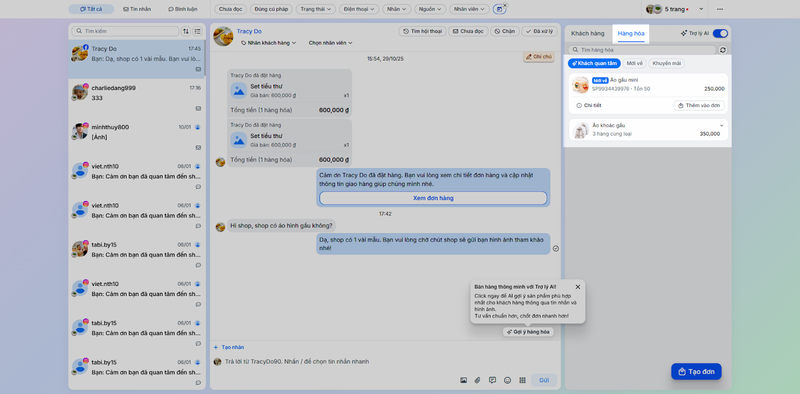 4. Tạo đơn hàng (Đặt hàng/ Hóa đơn) từ hội thoại