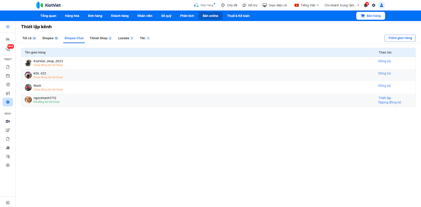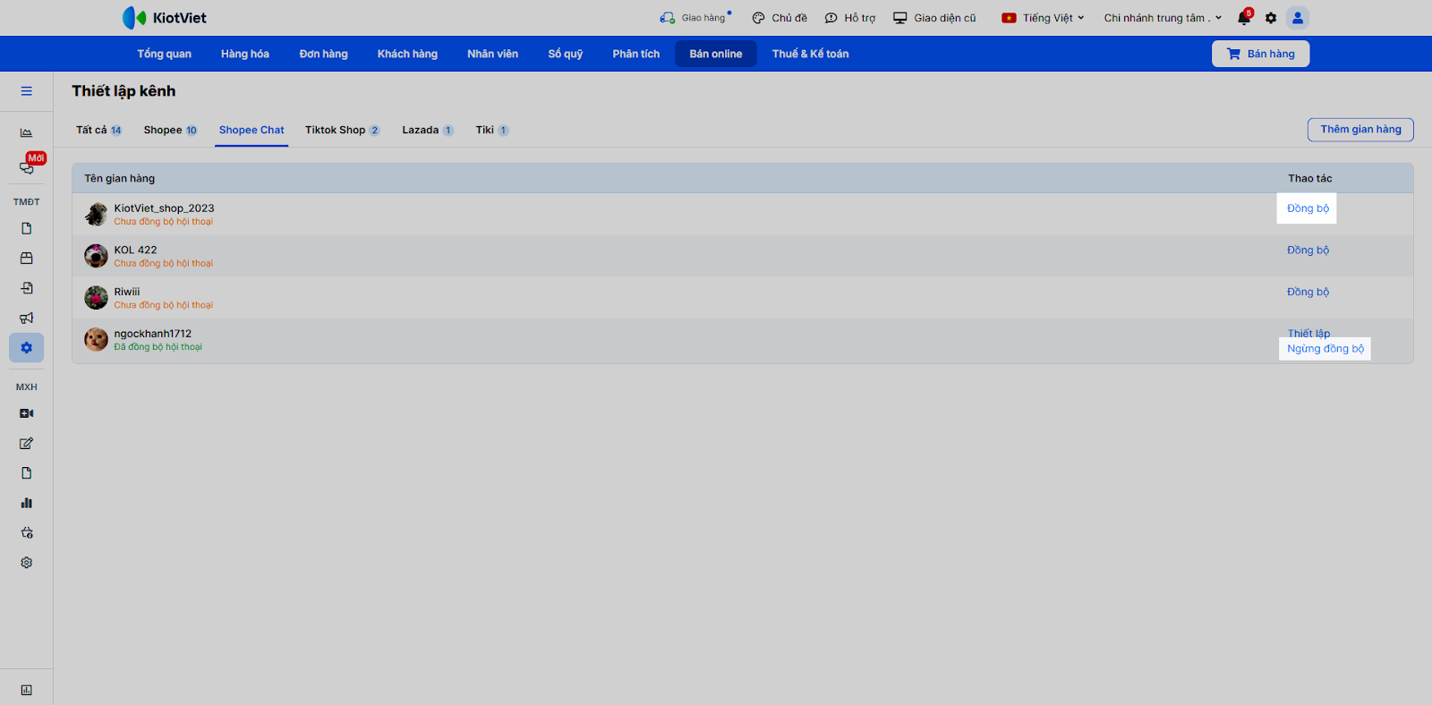- 1.1. Kết nối kênh bán
