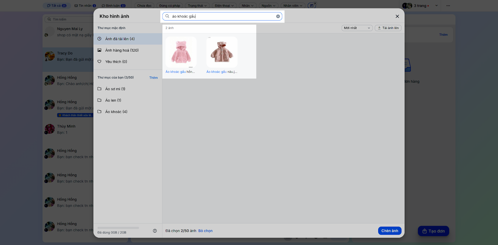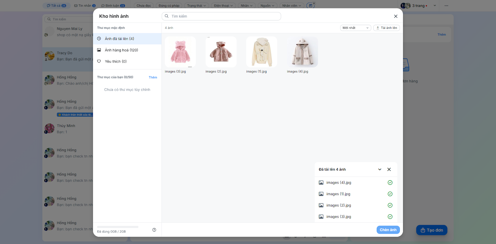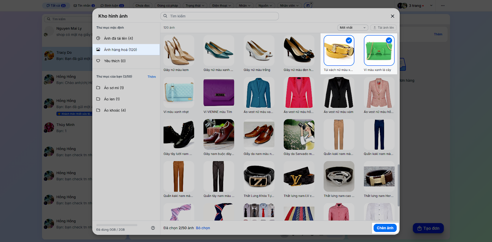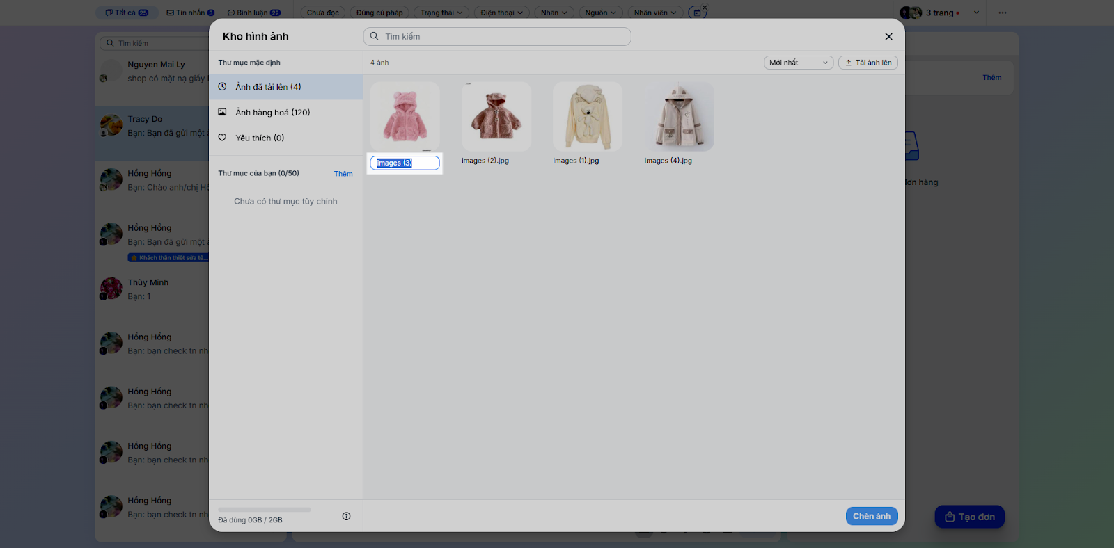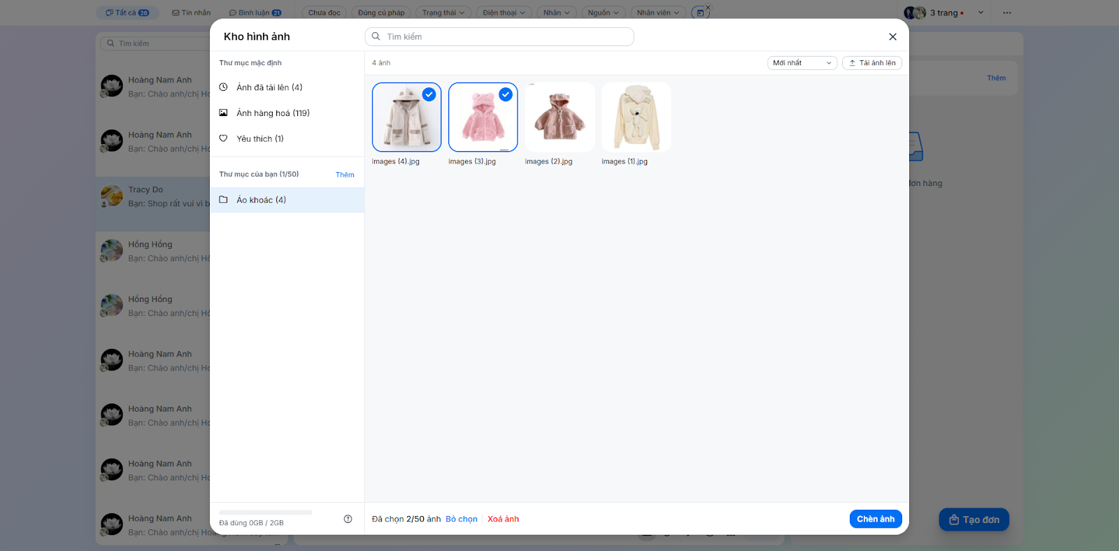 - Chọn các hình ảnh trong Kho hình ảnh (tối đa 50 hình/lần) → nhấn Chèn ảnh.