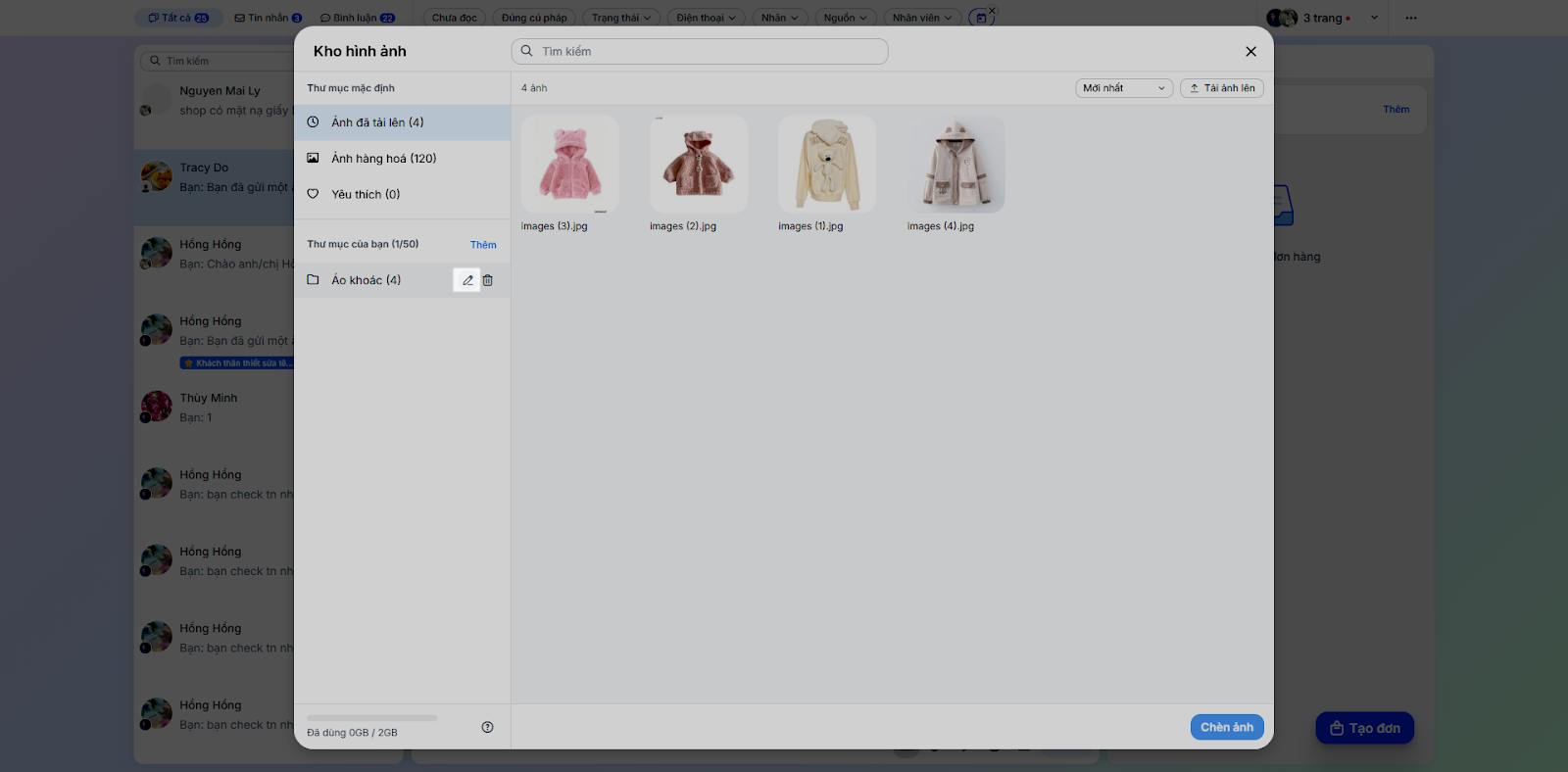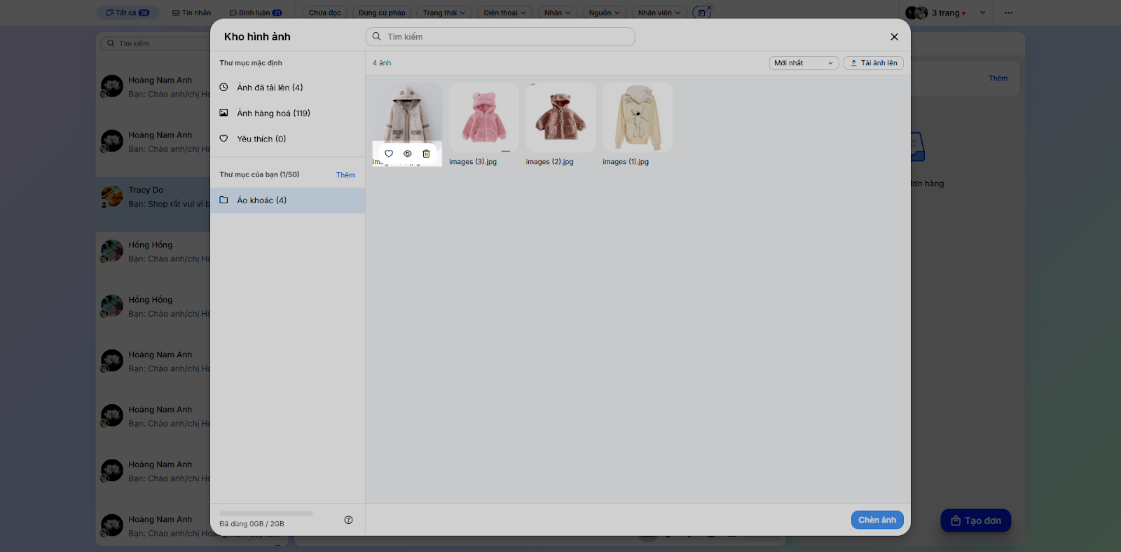 - Gửi hình ảnh: Để gửi hình ảnh cho khách, bạn nhấn vào biểu tượng hình ảnh → chọn hình ảnh → chạm biểu tượng v.
