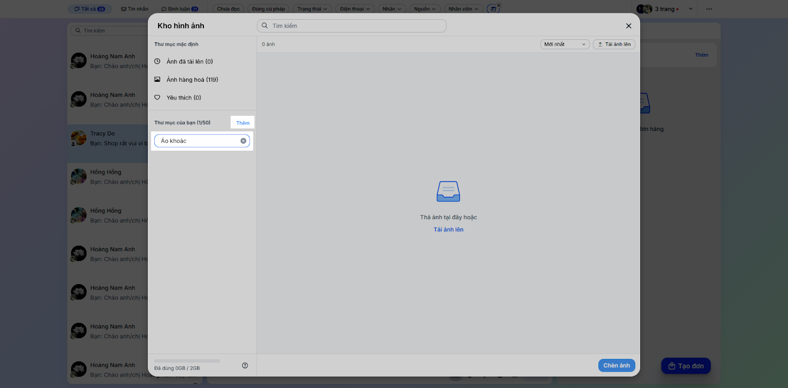 - Với gian hàng chưa có nhãn hội thoại → bạn nhấn Tạo nhãn để thêm thông tin.