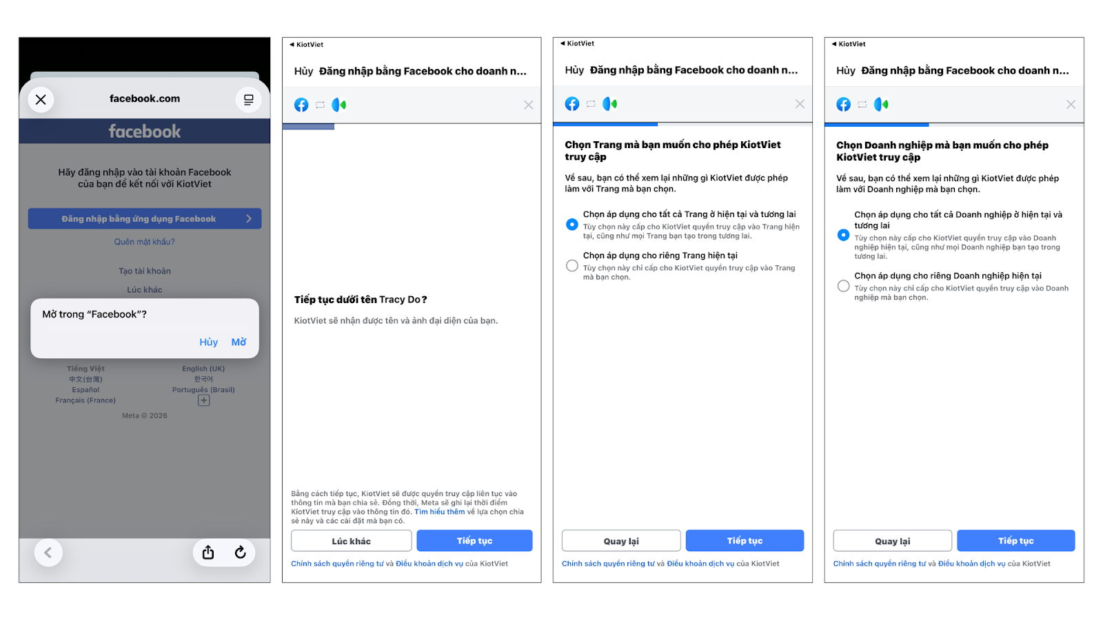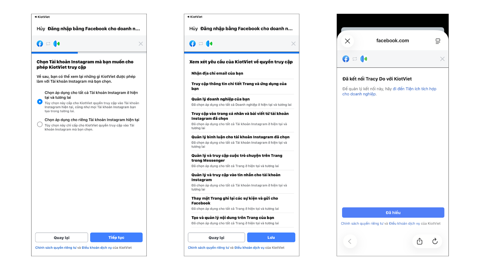 - Sau khi hoàn thành các bước kết nối với Facebook, bạn nhấn Tiếp.