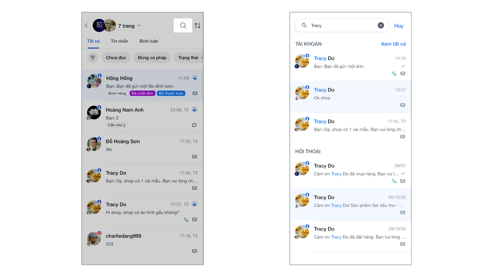 - Tình huống: Bạn cần tìm, lọc và sắp xếp hàng loạt hội thoại để xử lý theo thứ tự ưu tiên.