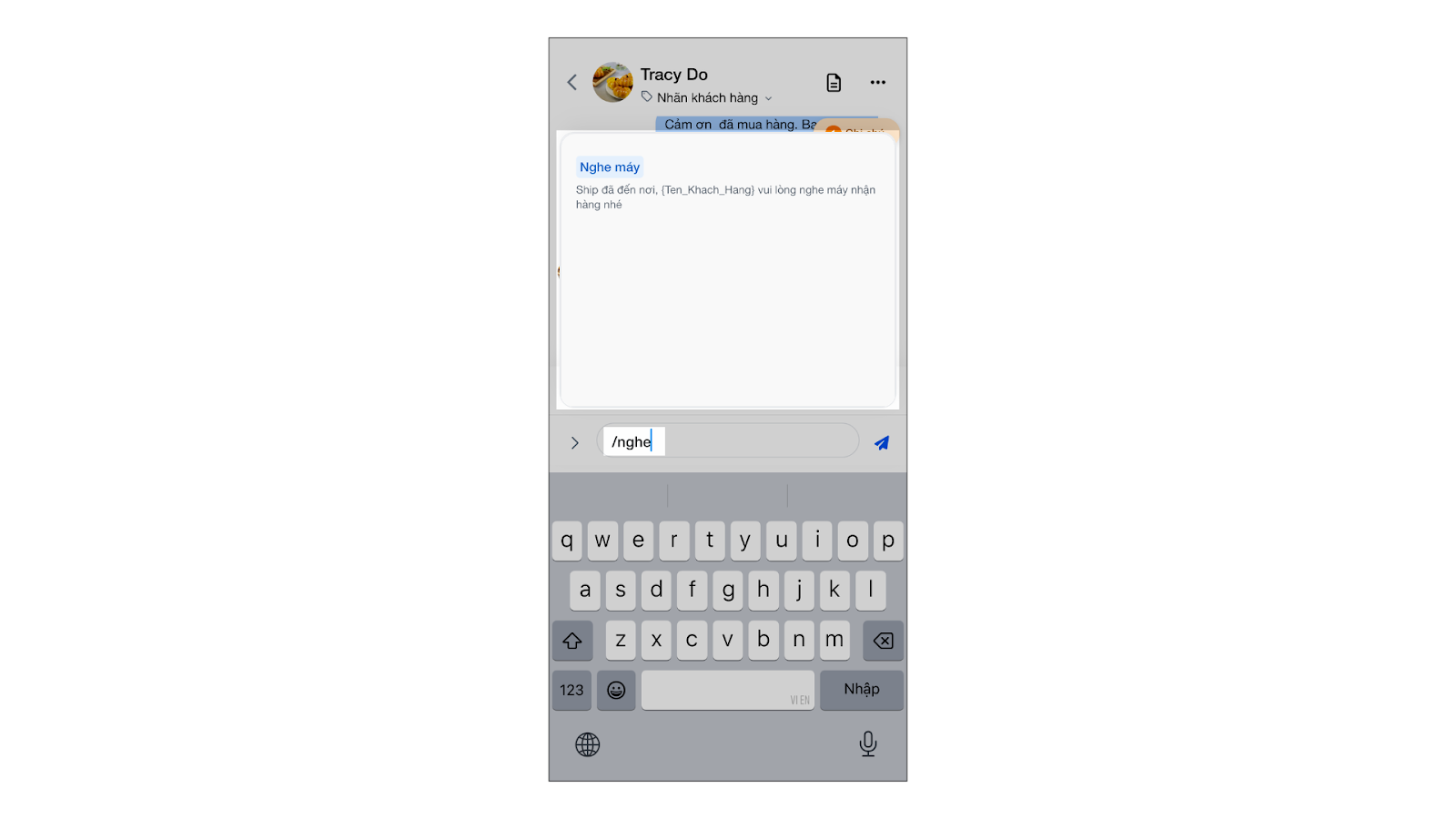 - Gửi tin nhắn nhanh: Nhấn biểu tượng tin nhắn mẫu hoặc gõ ký tự/để chọn mẫu tin có sẵn.