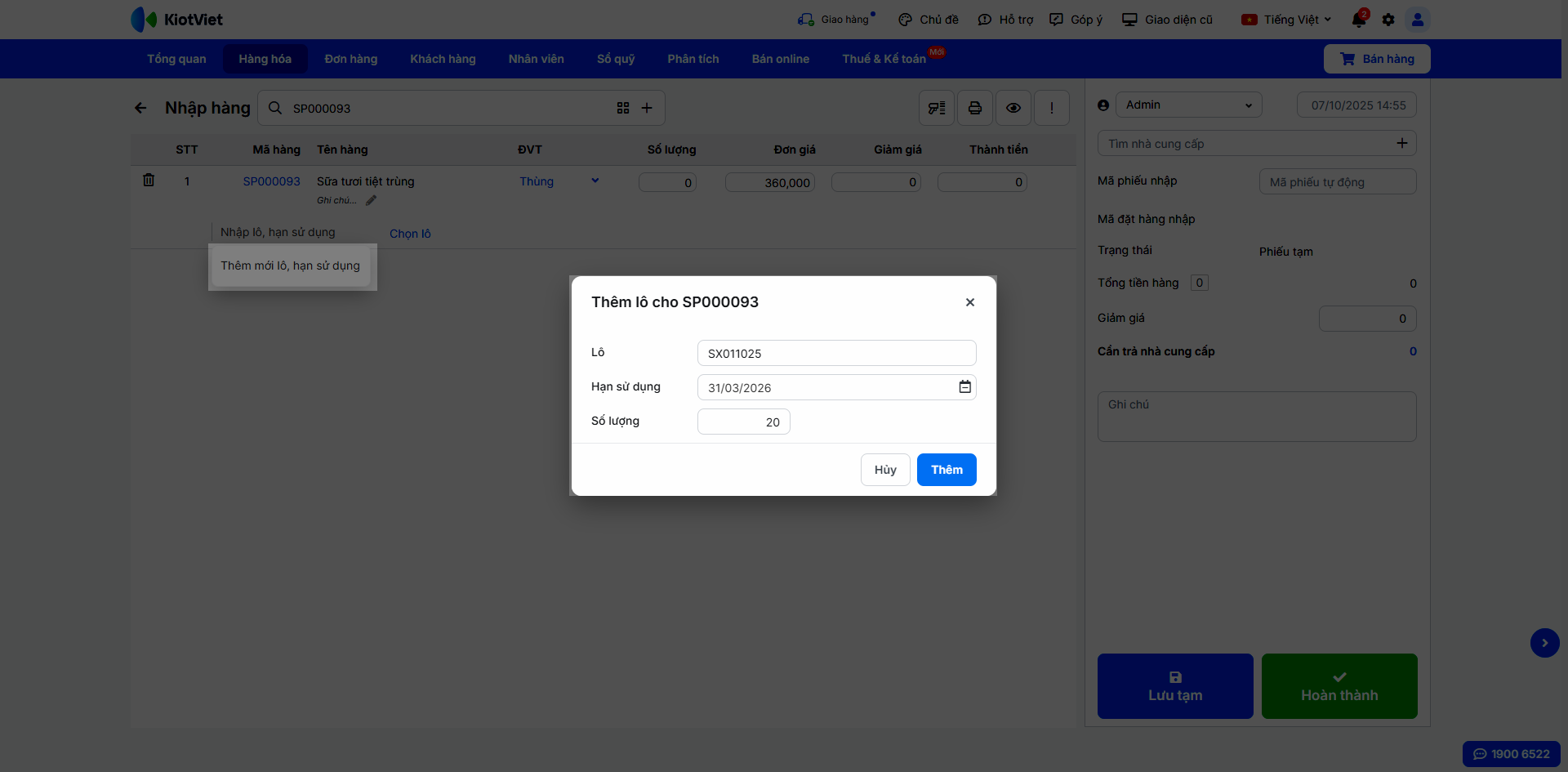 2.1. Thêm mới hàng hóa theo Lô – Hạn sử dụng