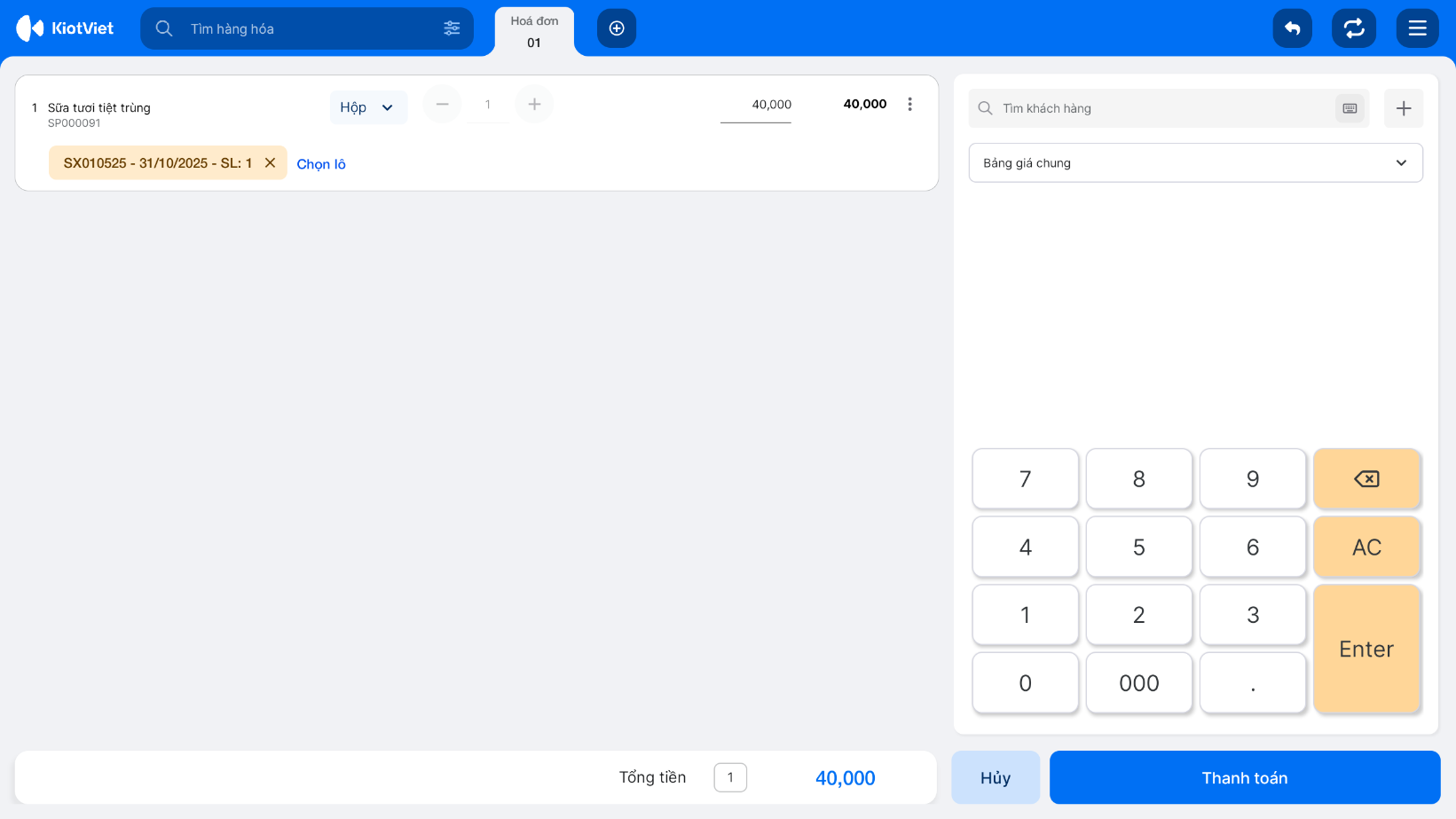 (3) Sau khi chọn lô, sản phẩm sẽ được thêm vào hóa đơn để tiến hành thanh toán.