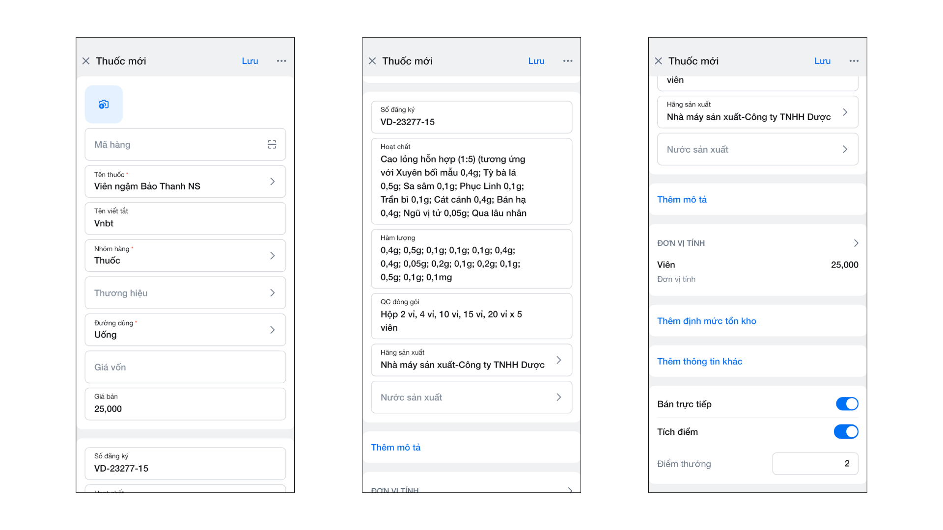 - Tình huống: Bạn cần tạo mới một loại thuốc và nhập lô hàng đầu tiên cho nó ngay trên ứng dụng di động.