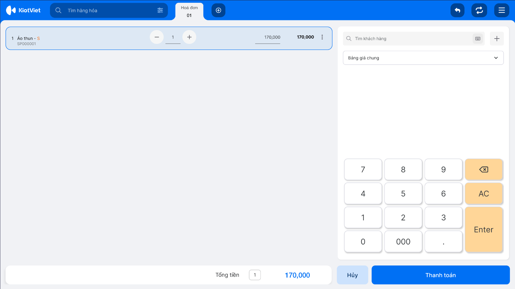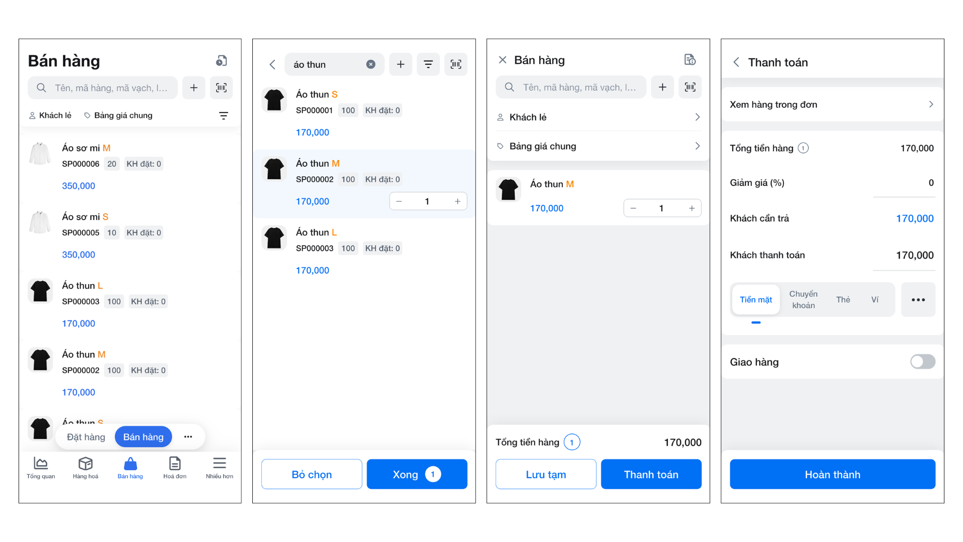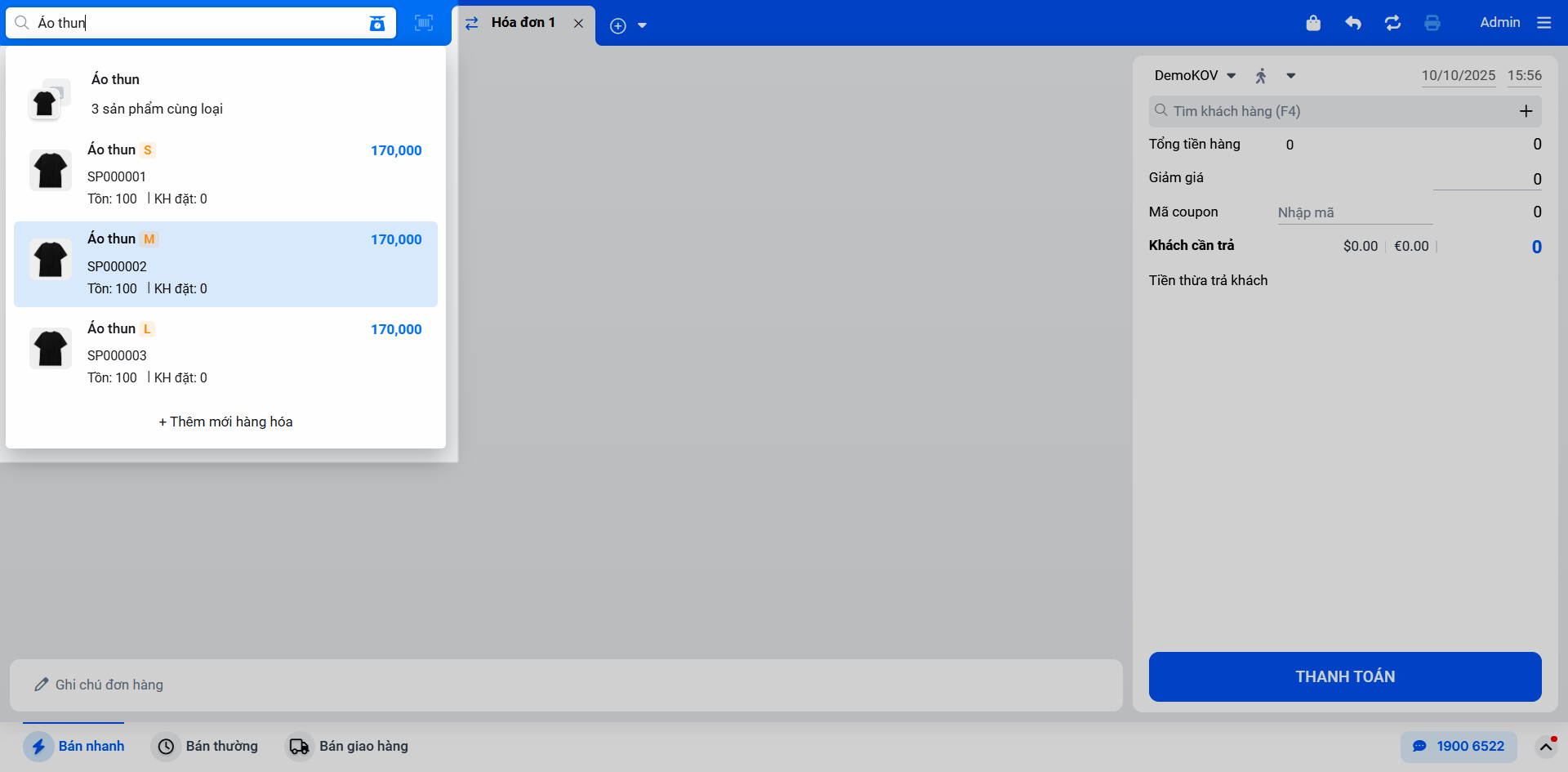 - Trên màn hình Bán hàng, tìm kiếm sản phẩm “Áo thun”.