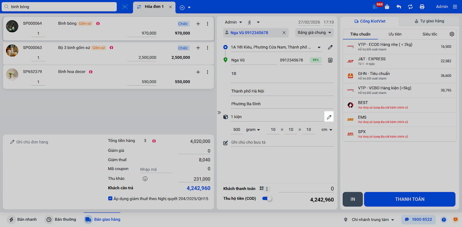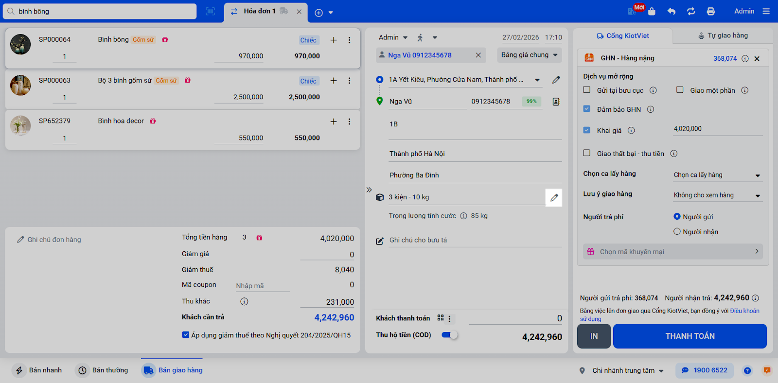 - Tình huống: Bạn cần lên nhanh đơn giao hàng nhiều kiện cho khách ngay trên điện thoại.