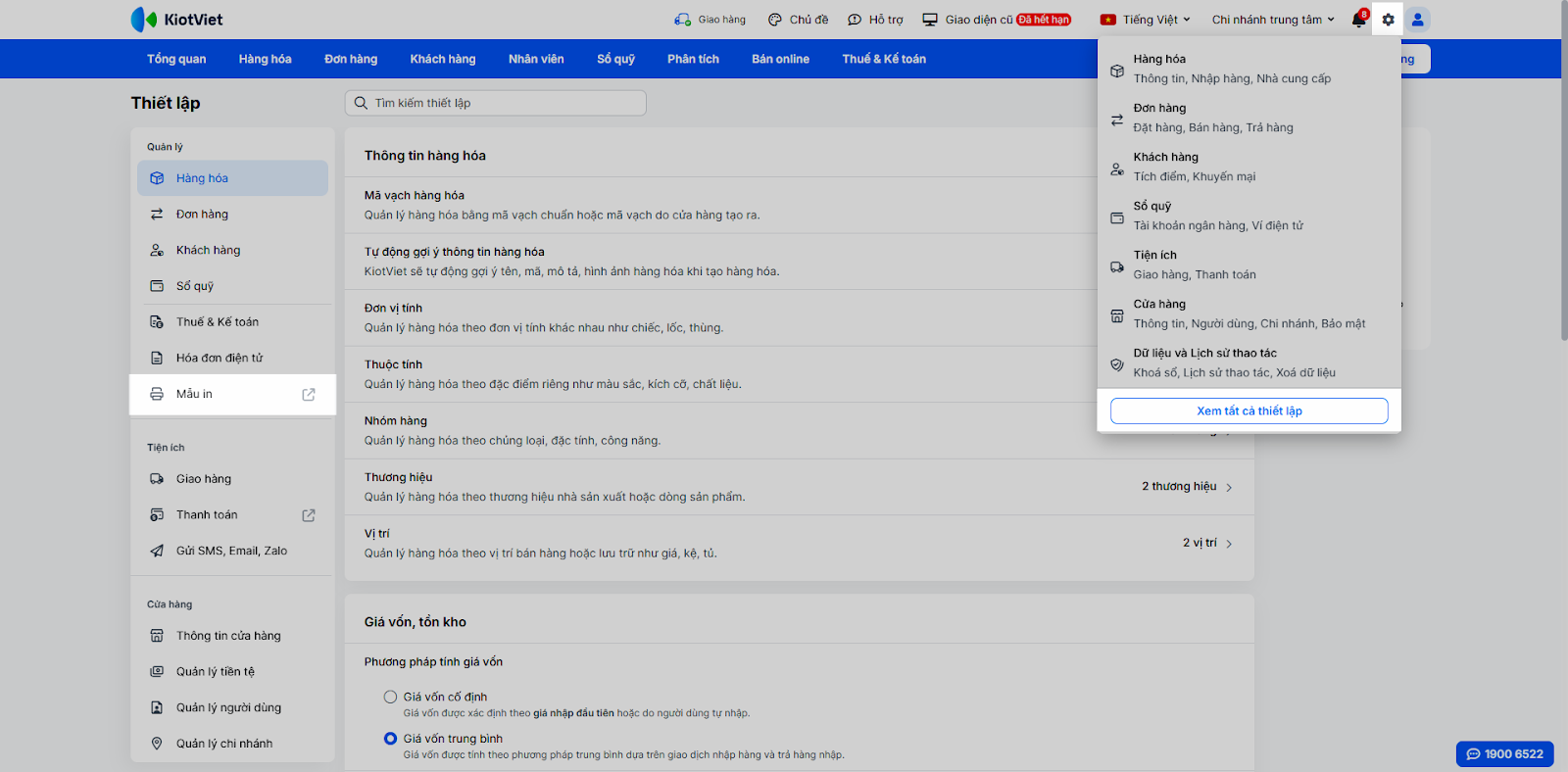 - Vào Thiết lập → Xem tất cả thiết lập → Mẫu in.