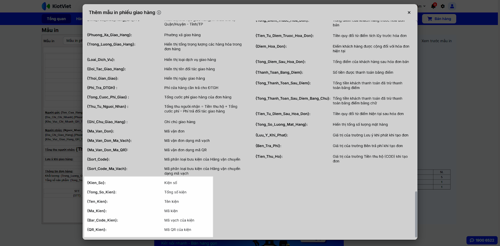 - 1. Thiết lập token kiện hàng trên mẫu in