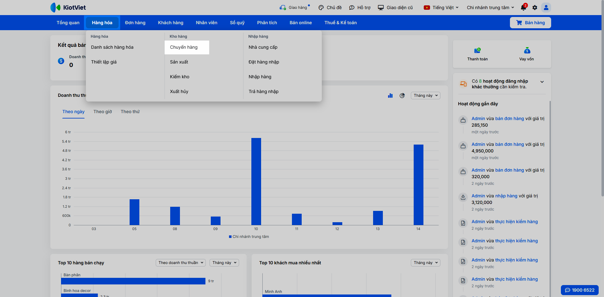 - Luân chuyển hàng hóa kịp thời: Giúp bạn điều chuyển hàng hóa giữa các chi nhánh để đáp ứng nhanh chóng nhu cầu của khách hàng tại từng khu vực.