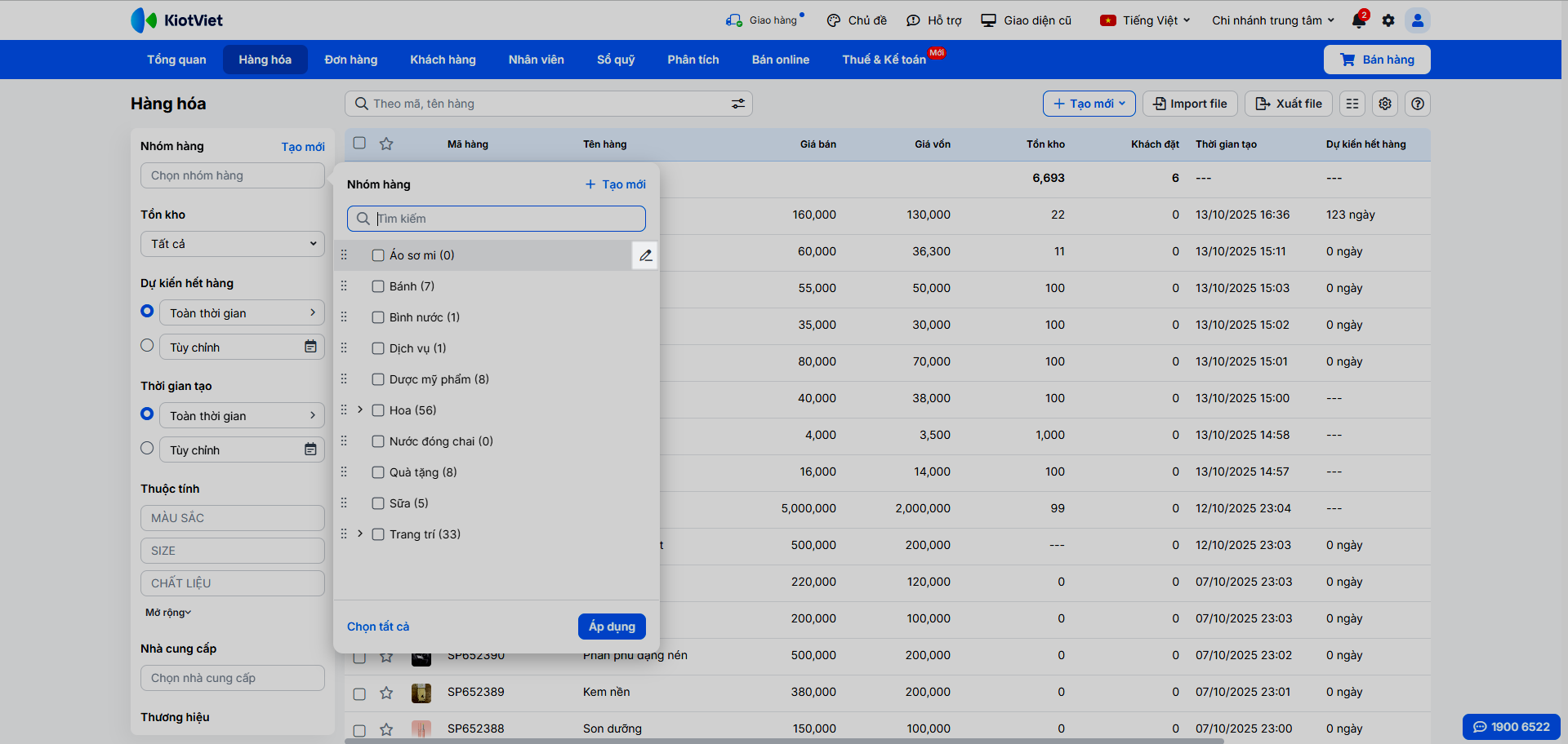 - Quản lý tập trung và khoa học: Giúp chủ cửa hàng và bộ phận quản lý dễ dàng phân loại, tìm kiếm và kiểm soát toàn bộ danh sách sản phẩm theo nhóm hàng, thương hiệu, thuộc tính và nhiều tiêu chí khác, tạo ra một hệ thống dữ liệu nhất quán.