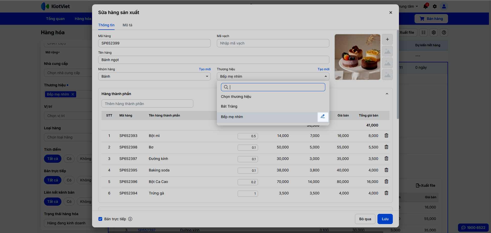 - Chỉnh sửa các thông tin cần thiết (ví dụ: Tên hàng, Mã hàng) và nhấn Lưu.