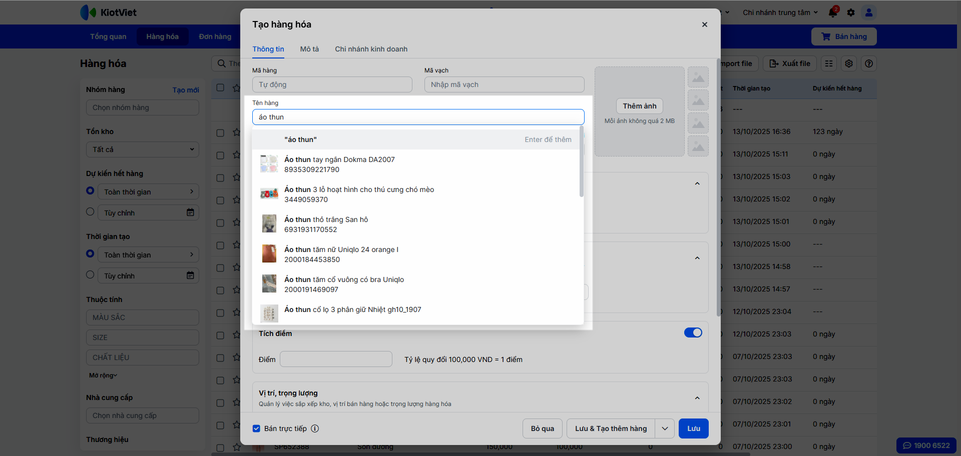 - Chọn sản phẩm phù hợp. Các thông tin như Tên hàng, Mã vạch, Hình ảnh, Mô tả sẽ được tự động điền.