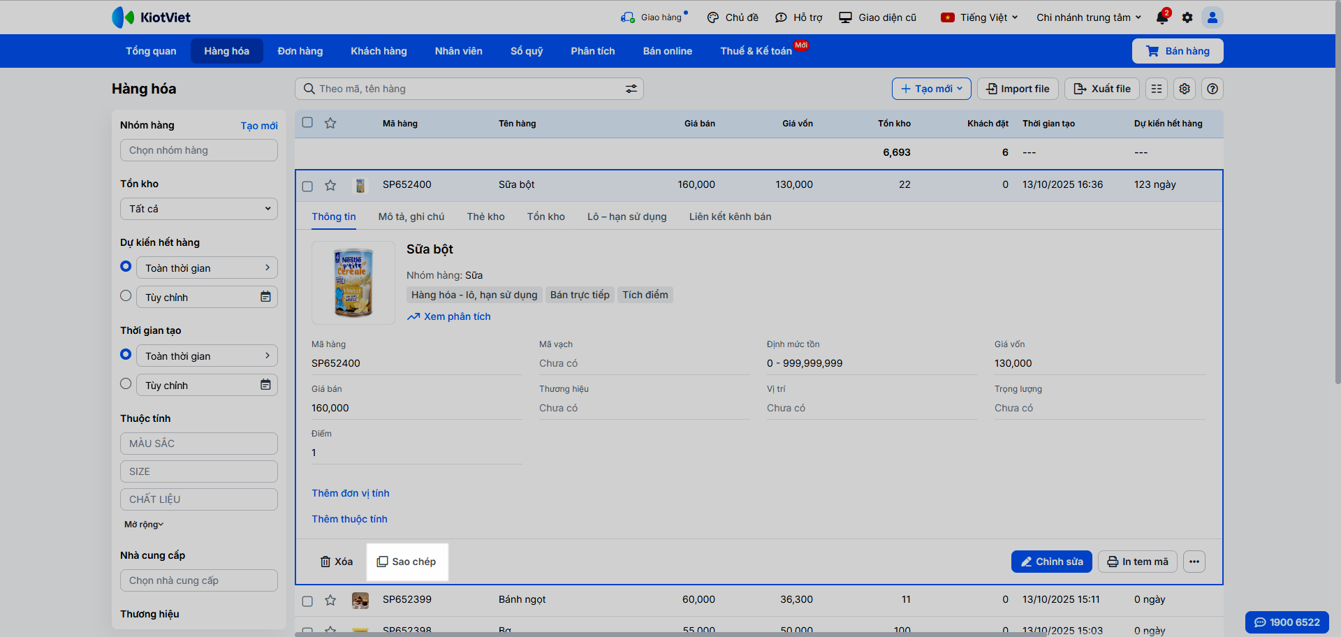 - Nhấn nút Sao chép trên dòng của hàng hóa đó.