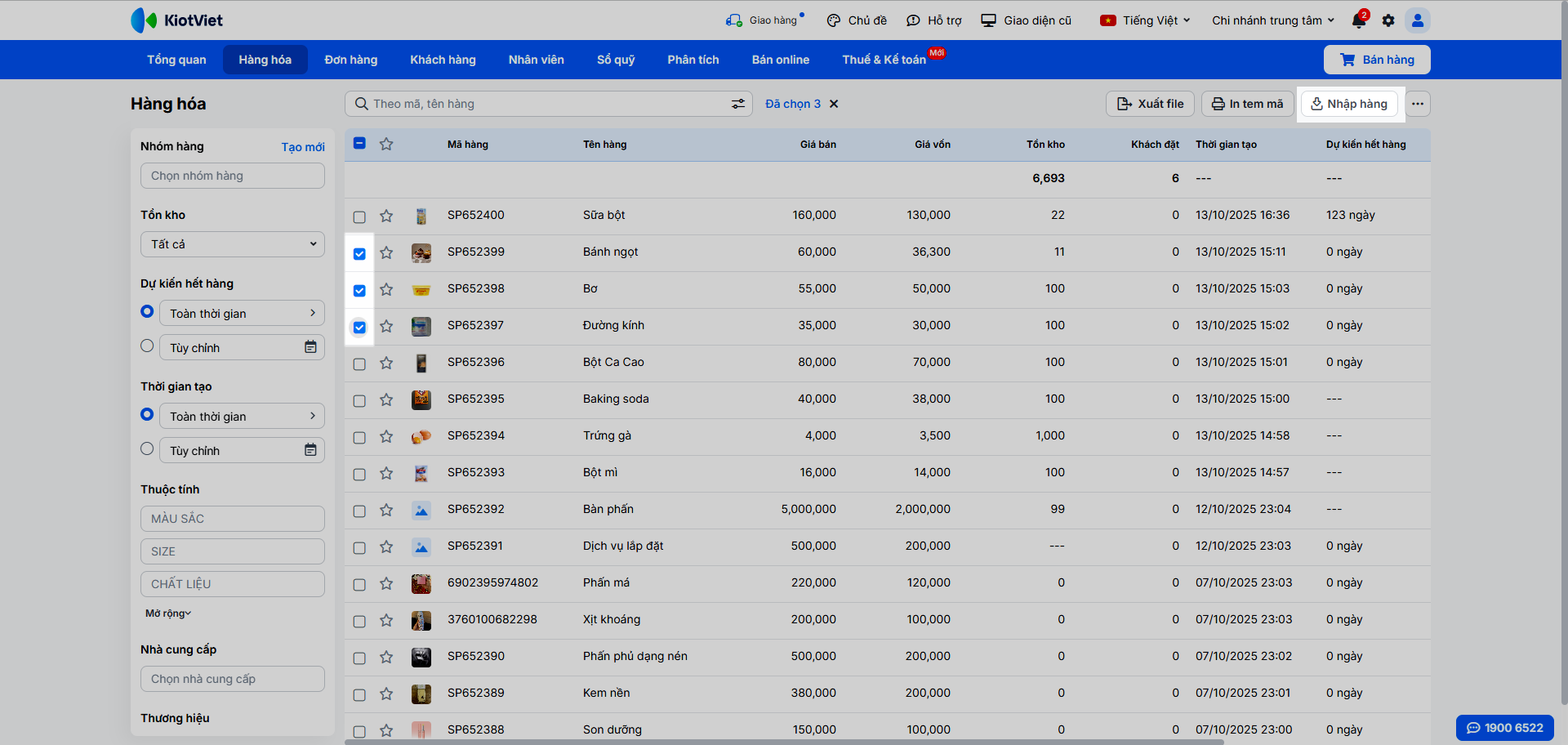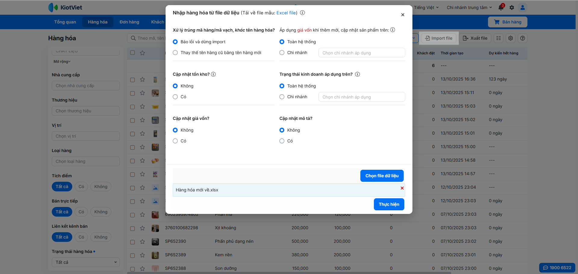 - Khi bạn thực hiện các thao tác như Thêm mới, Cập nhật, Ngừng kinh doanh hoặc Import hàng hóa.