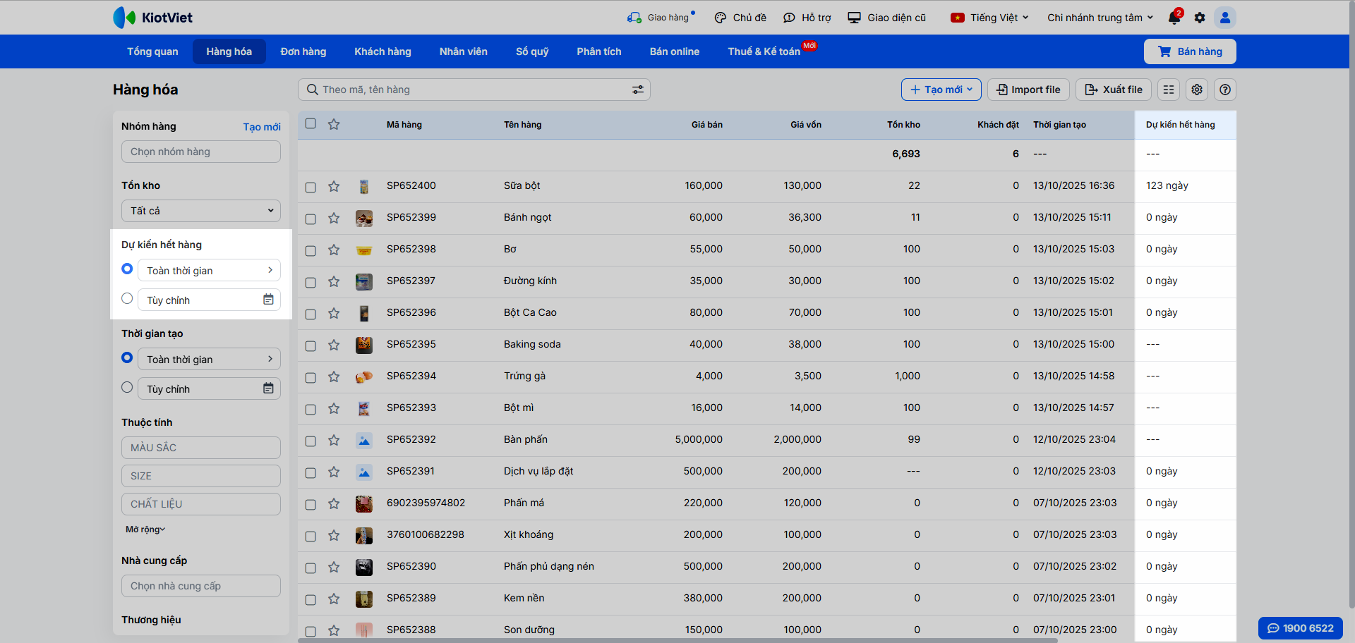 - Bạn có thể sử dụng bộ lọc Ngày dự kiến hết hàng để tìm kiếm các sản phẩm sắp hết trong một khoảng thời gian nhất định.