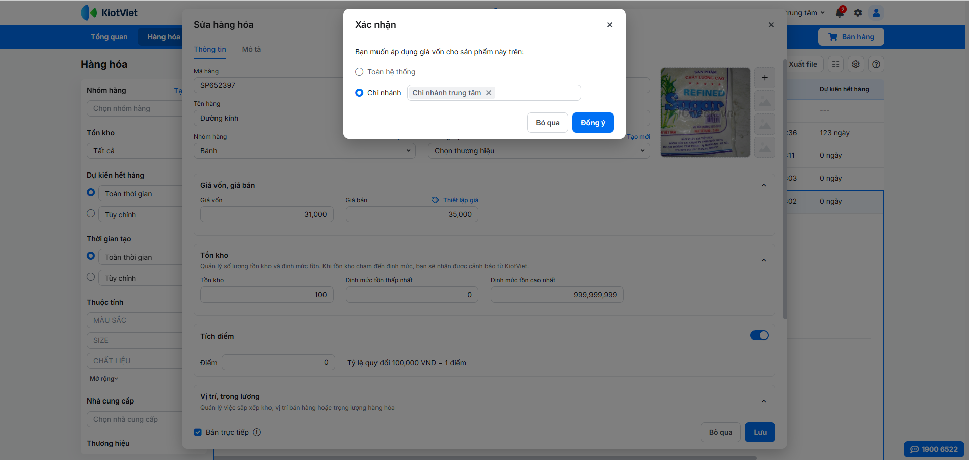 - Áp dụng giá vốn khi thêm mới, cập nhật sản phẩm trên Toàn hệ thống hay cụ thể 1 vài chi nhánh.