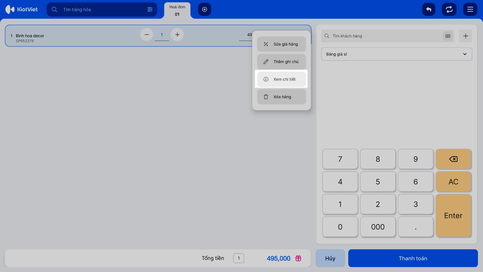 - Trên dòng hàng hóa trong hóa đơn, nhấn vào biểu tượng tùy chọn (…).