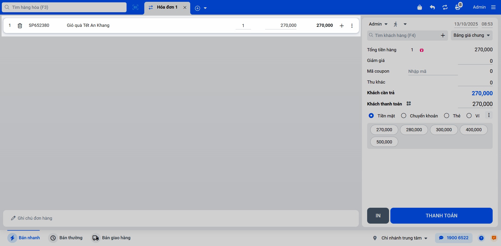 - Bạn có thể điều chỉnh số lượng nếu cần và tiến hành thanh toán cho khách hàng như bình thường.