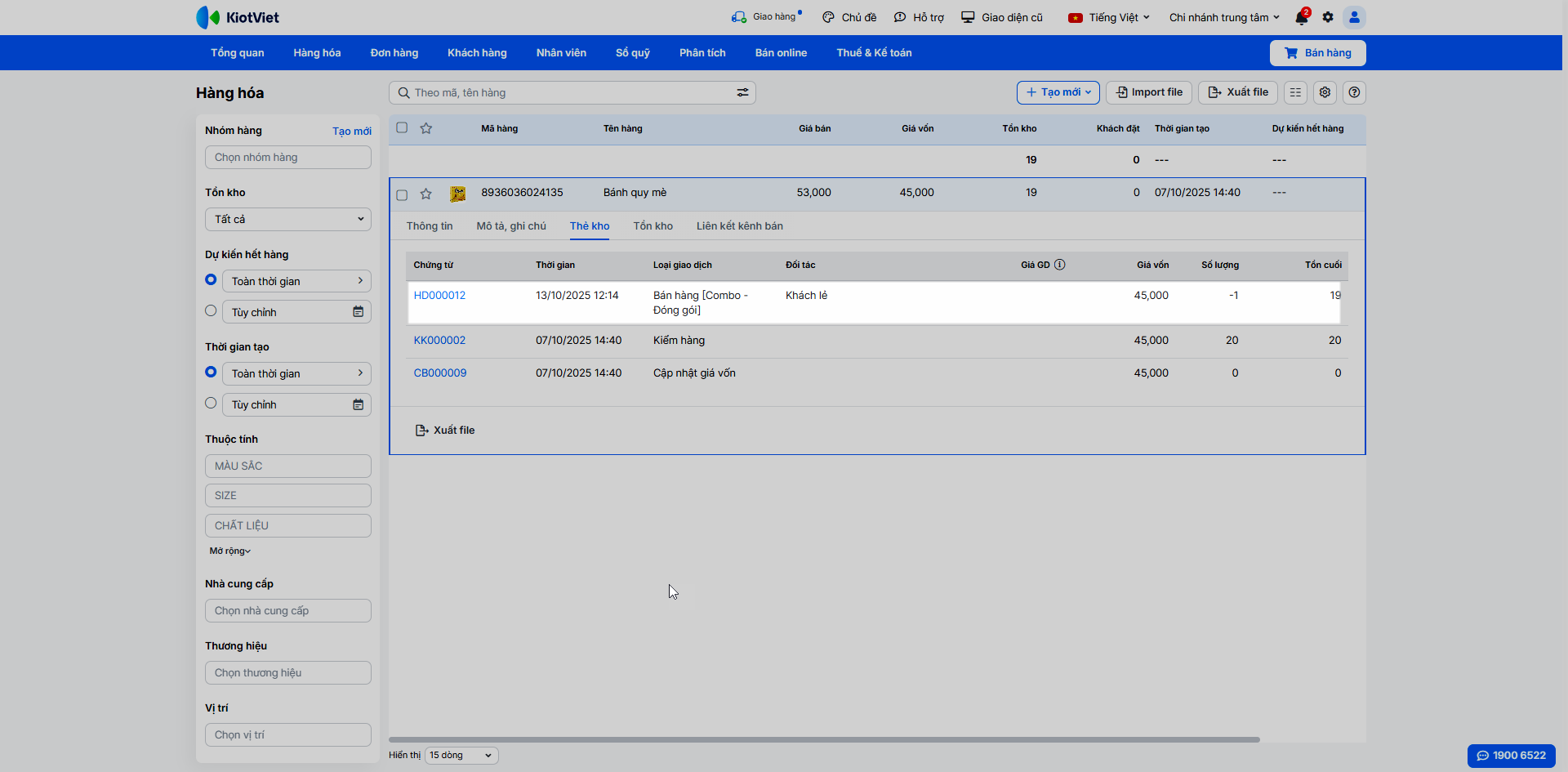 - Quản lý tồn kho tự động: Khi bạn bán một hàng combo, hệ thống sẽ tự động trừ tồn kho của các hàng hóa thành phần tương ứng. Bản thân hàng combo không cần quản lý tồn kho.