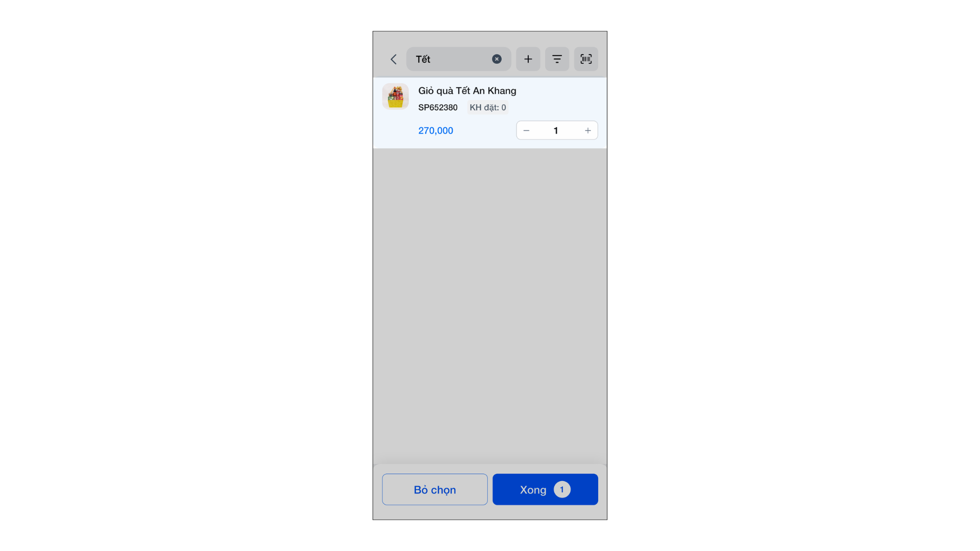 - Tình huống: Nhân viên thu ngân cần thêm combo “Giỏ qu&à tết” vào hóa đơn cho khách ngay tại quầy.