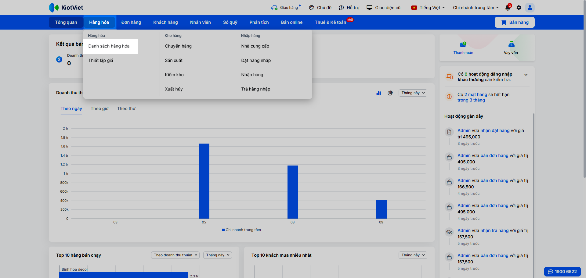 - Tại màn hình Quản lý, vào menu Hàng hóa→ chọn Danh sách hàng hóa.