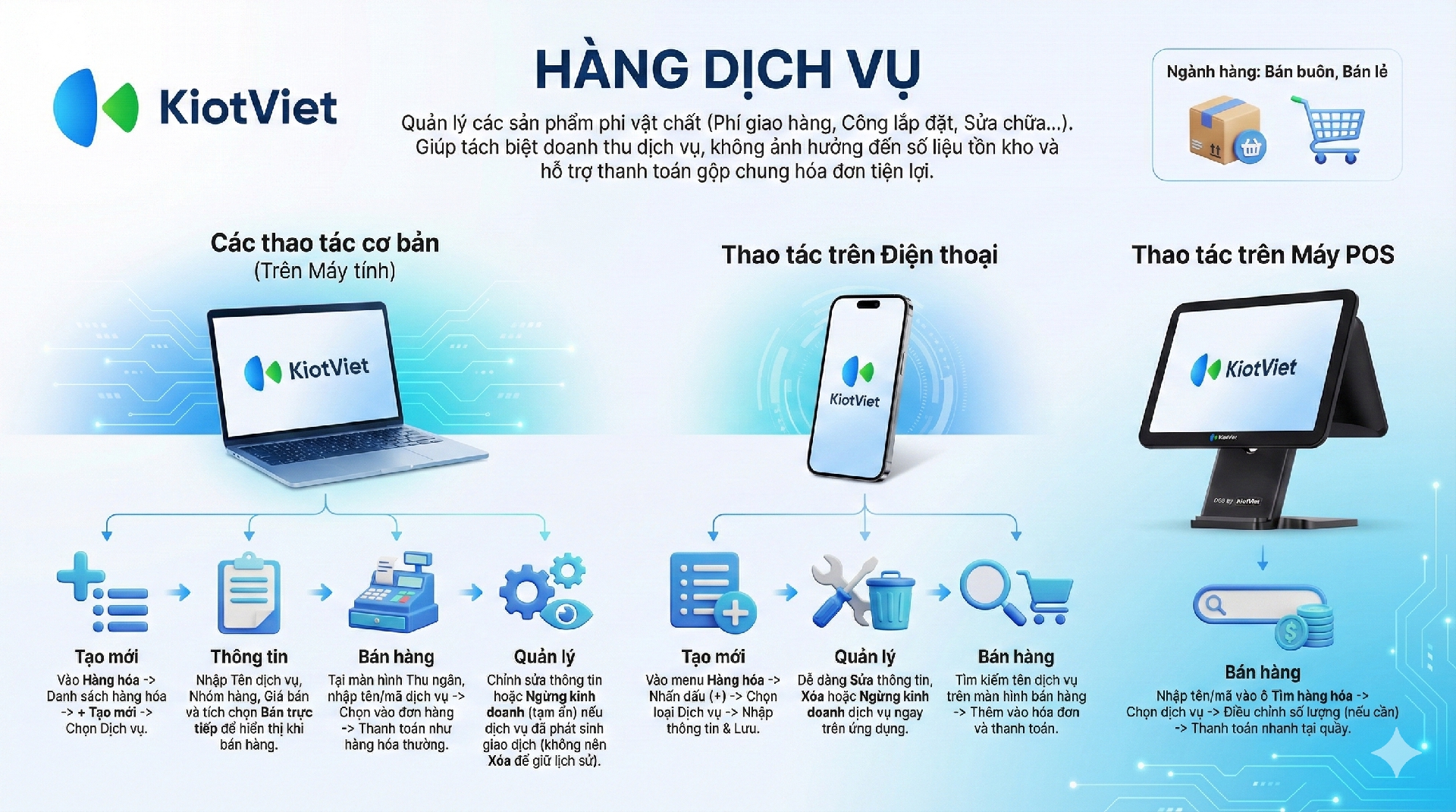 Lợi ích nổi bật của việc quản lý Hàng dịch vụ trên KiotViet: