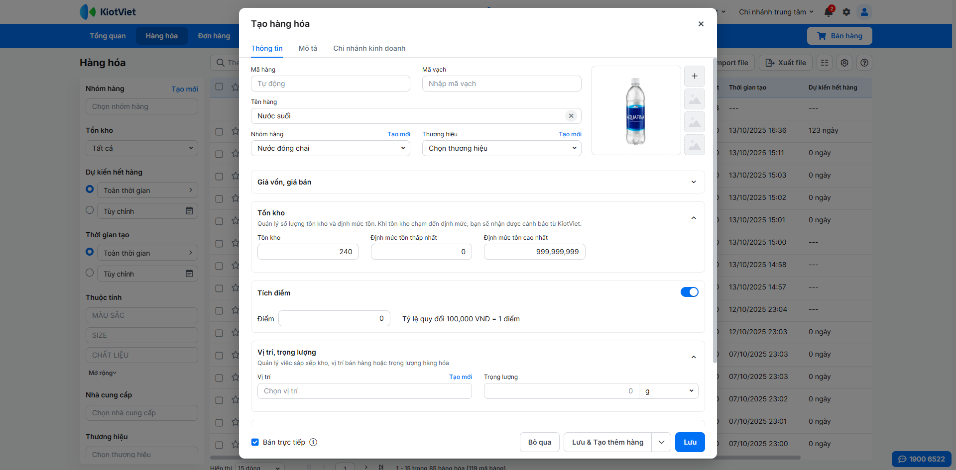 1. Thêm mới hàng hóa