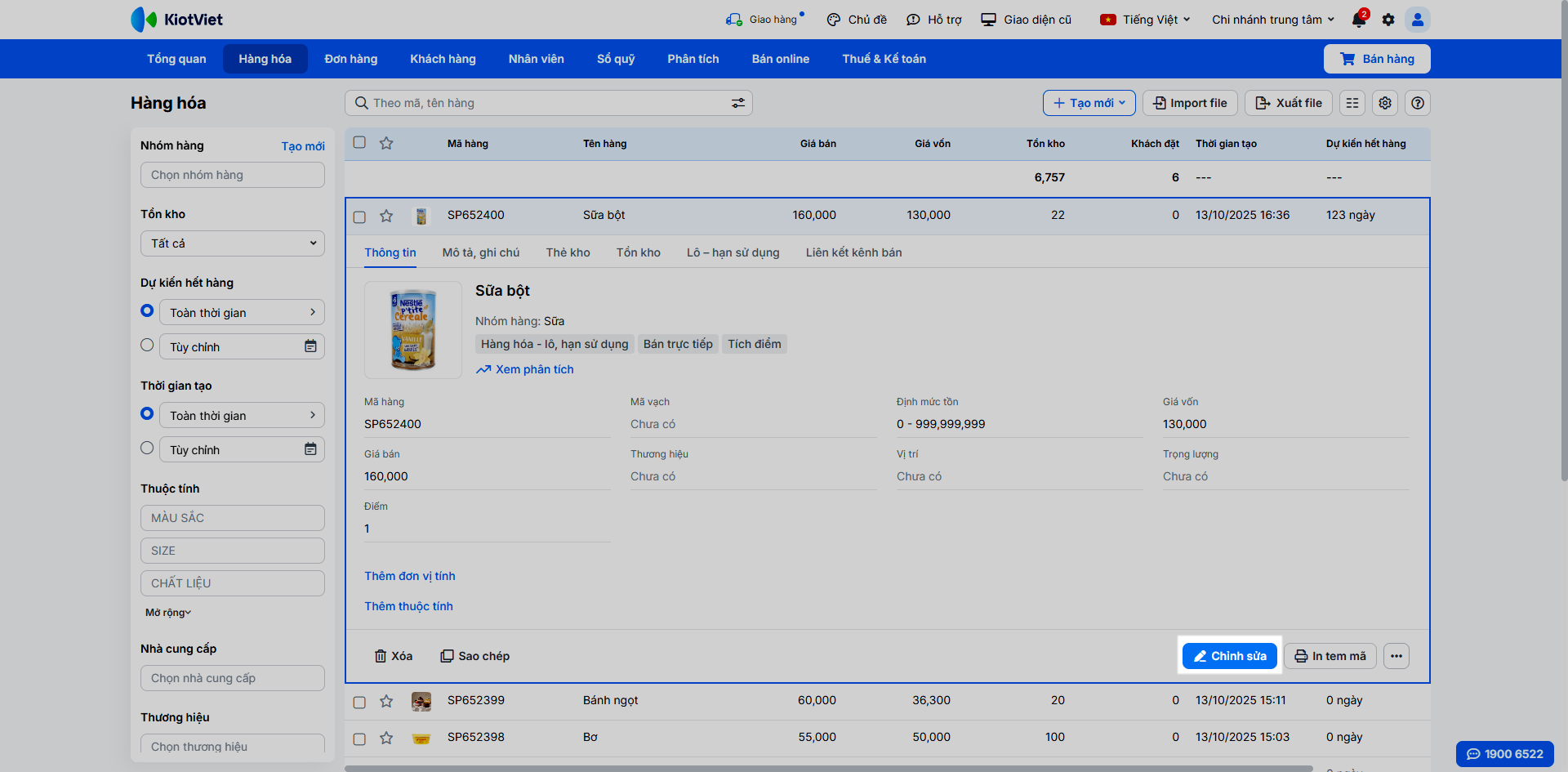 - Trong danh sách hàng hóa, tìm sản phẩm và nhấn Chỉnh sửa.