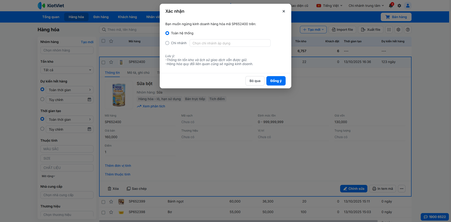- Nếu đã phát sinh giao dịch, bạn nên sử dụng tính năng Ngừng kinh doanh để dễ dàng tìm kiếm theo thông tin hàng hóa.