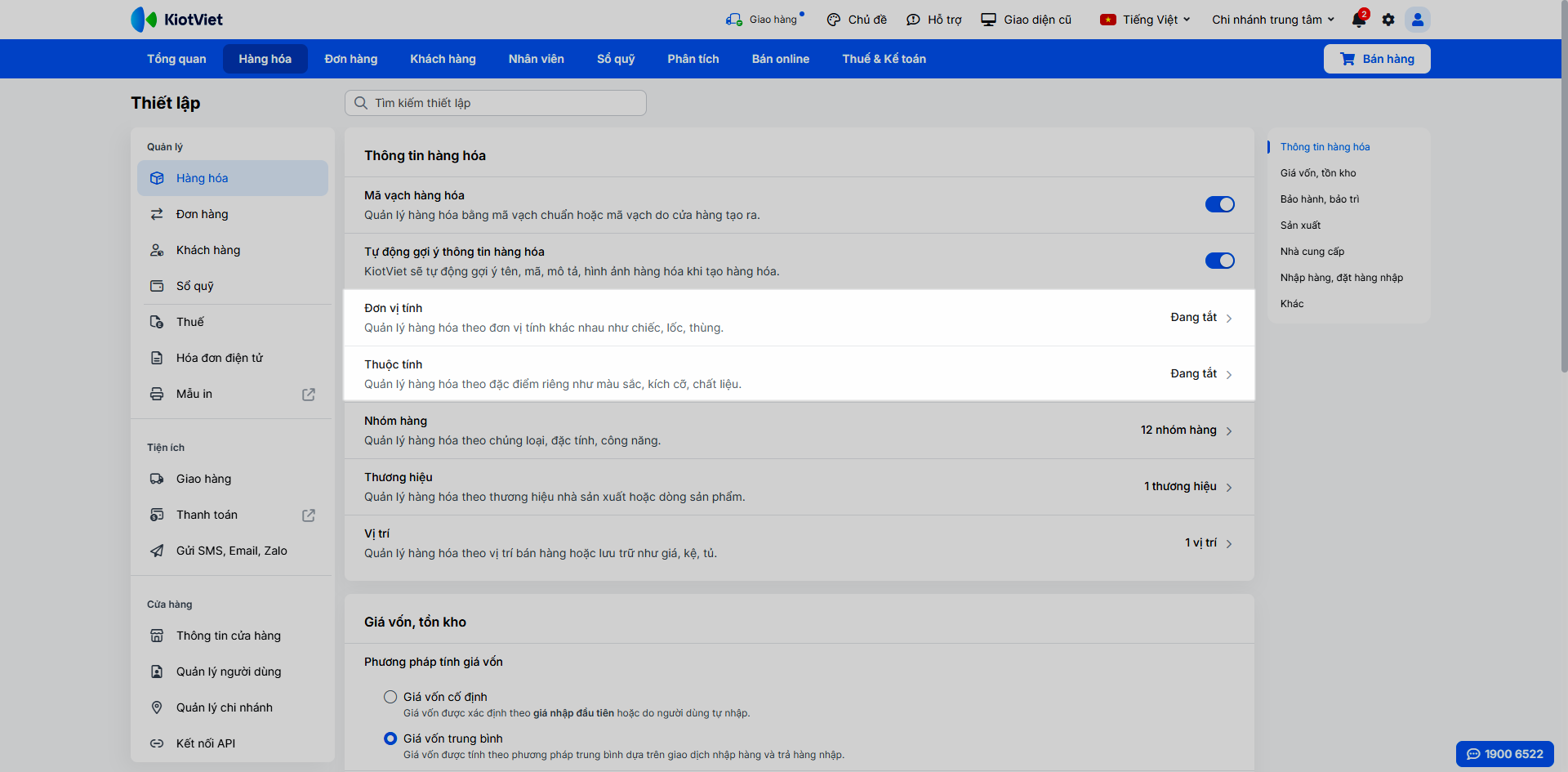 1. Quản lý hàng hóa có thuộc tính và đơn vị tính