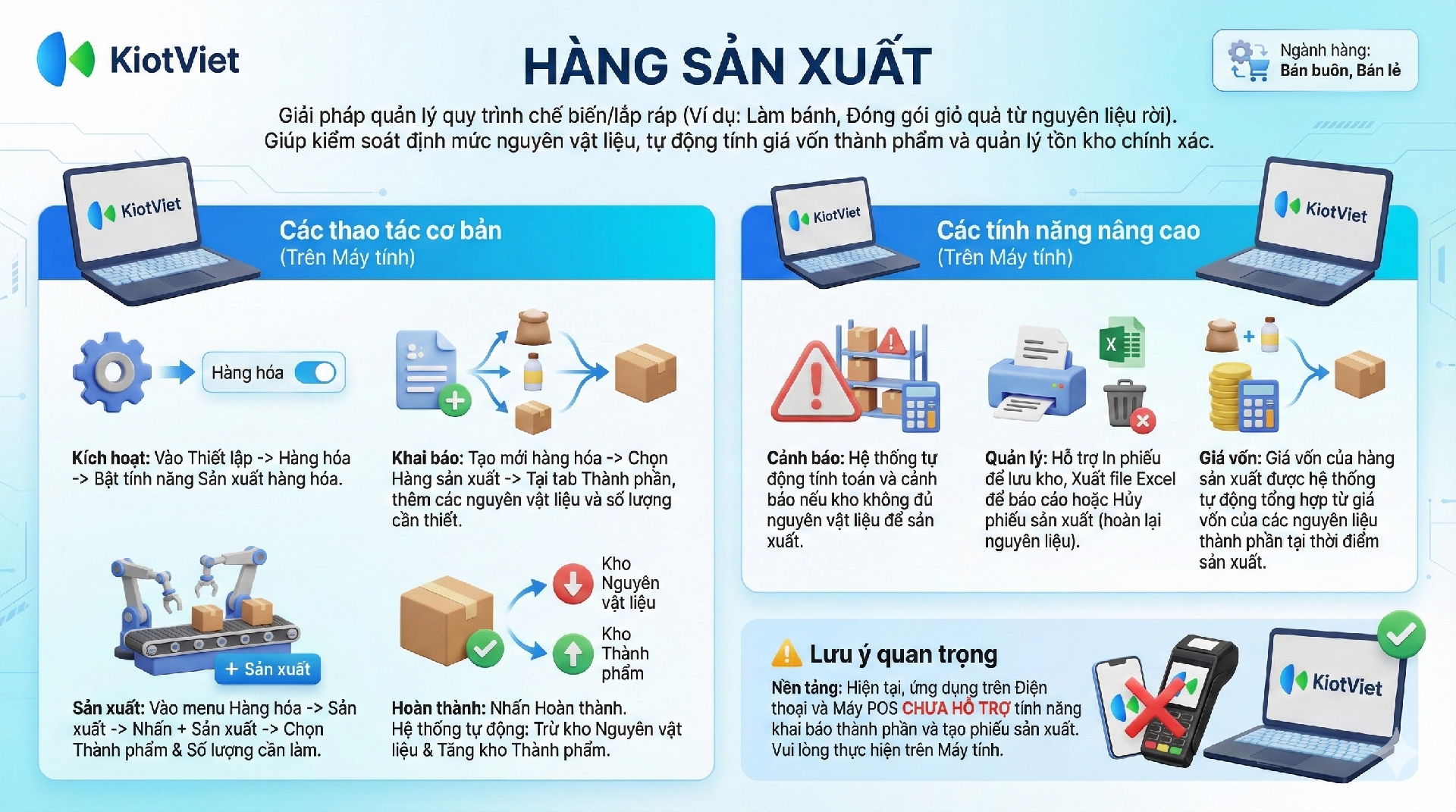 Lợi ích nổi bật của tính năng Sản xuất hàng hóa trên KiotViet: