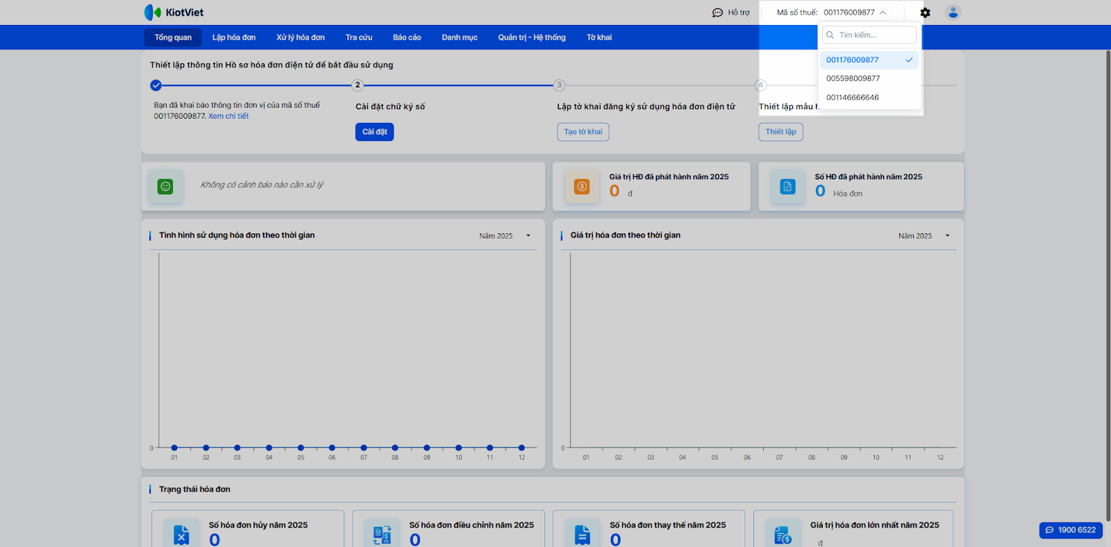 - Mỗi Mã số thuế sẽ có hồ sơ hóa đơn điện tử riêng và cần thực hiện đầy đủ 4 bước thiết lập mới có thể phát hành hóa đơn điện tử.