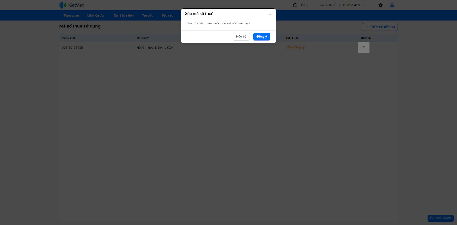 - Chỉ có thể xóa Mã số thuế chưa từng phát hành hóa đơn thành công.