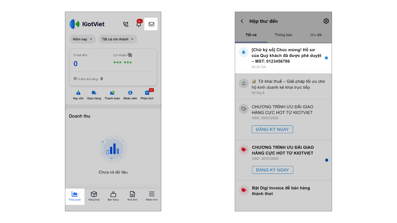 - Thông báo tại hộp thư trên màn hình Tổng quan
