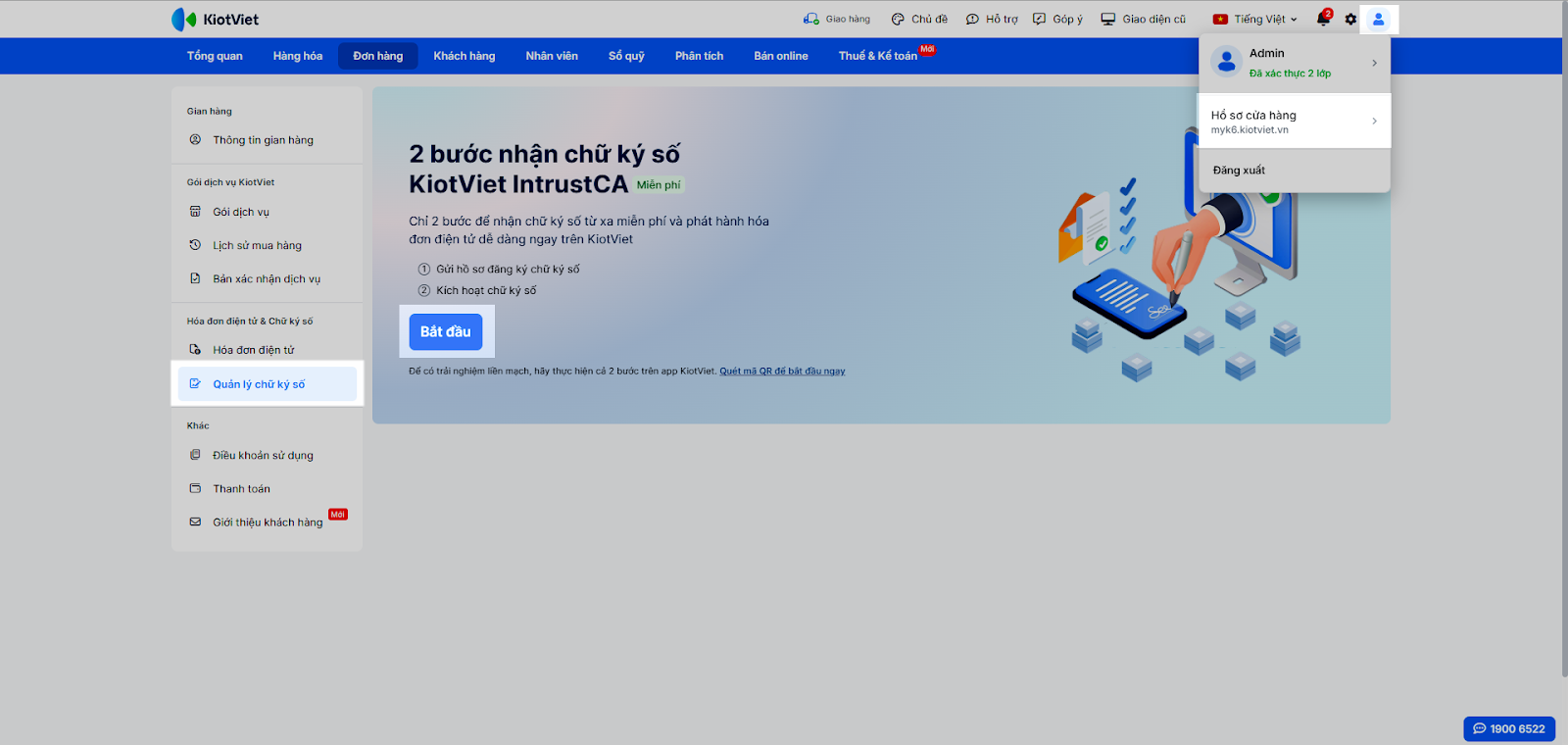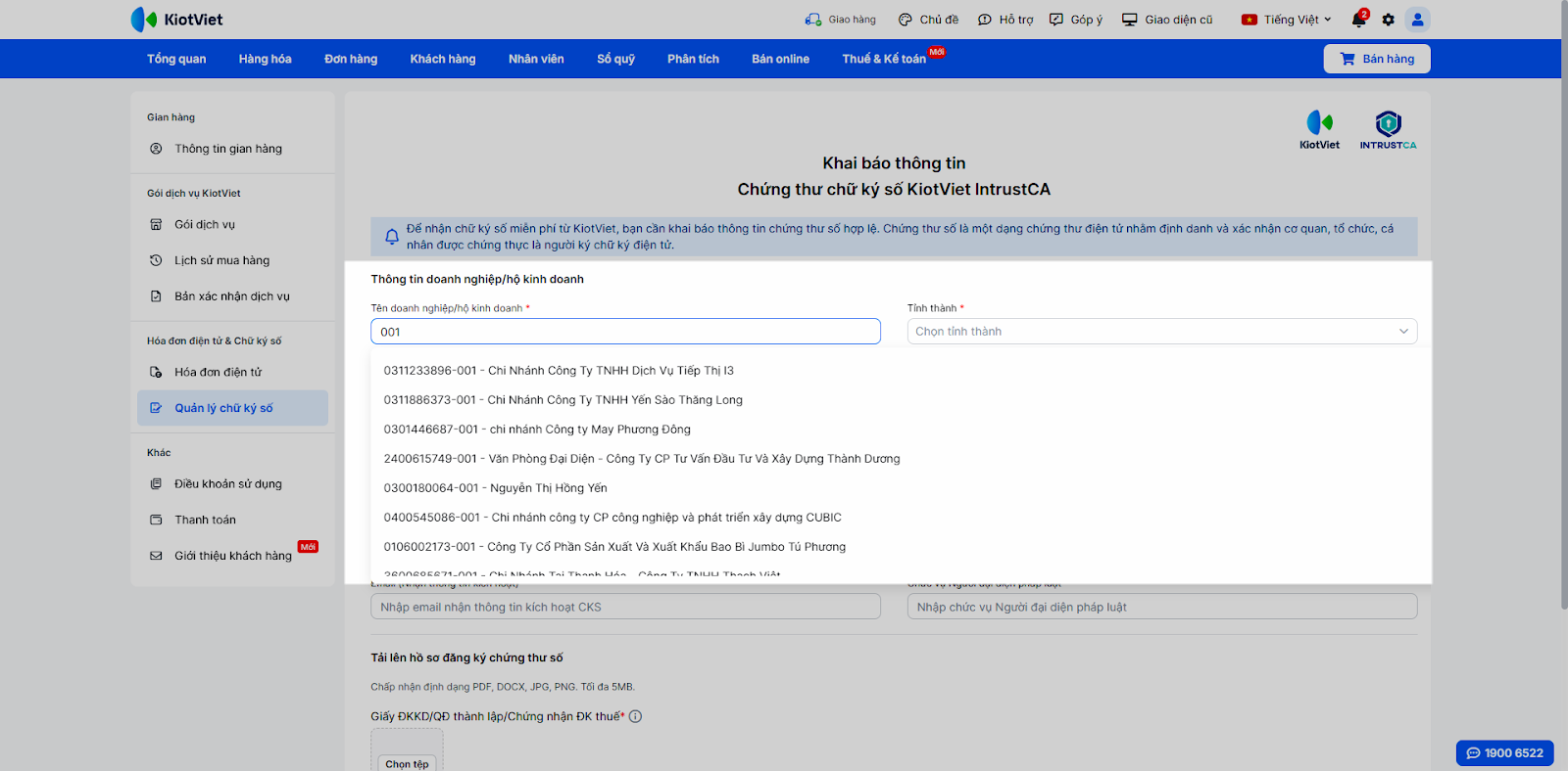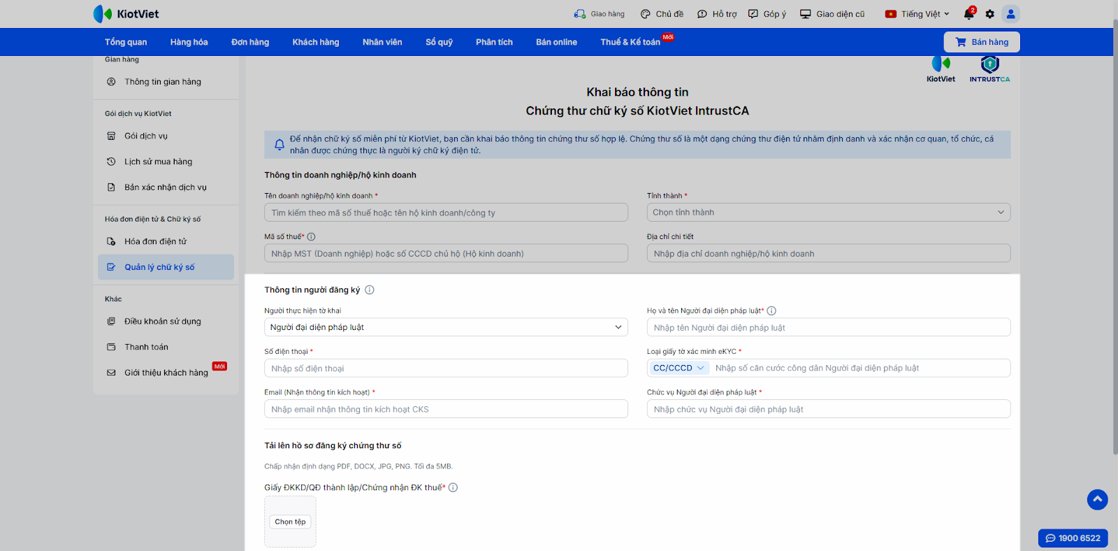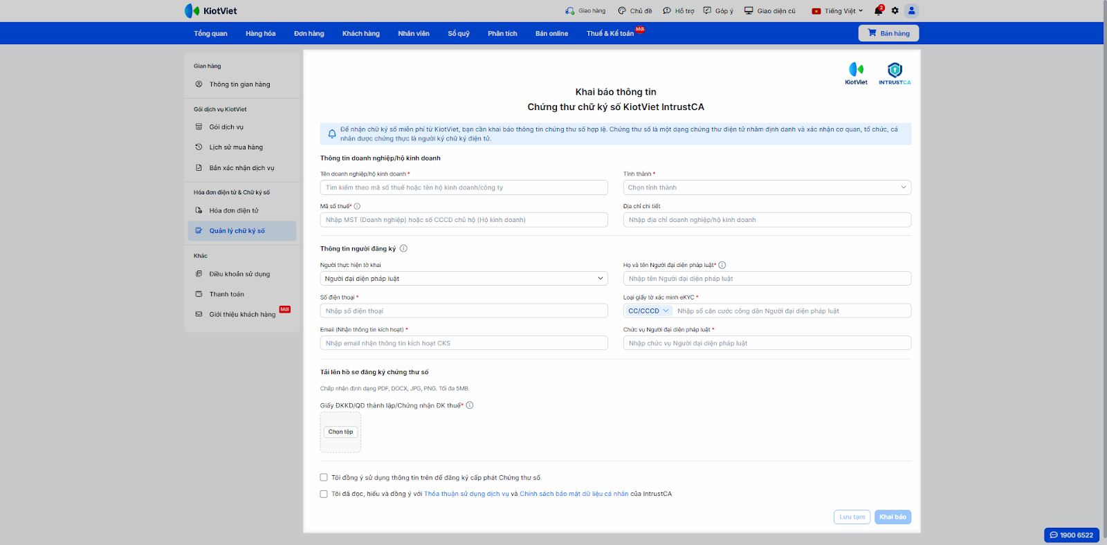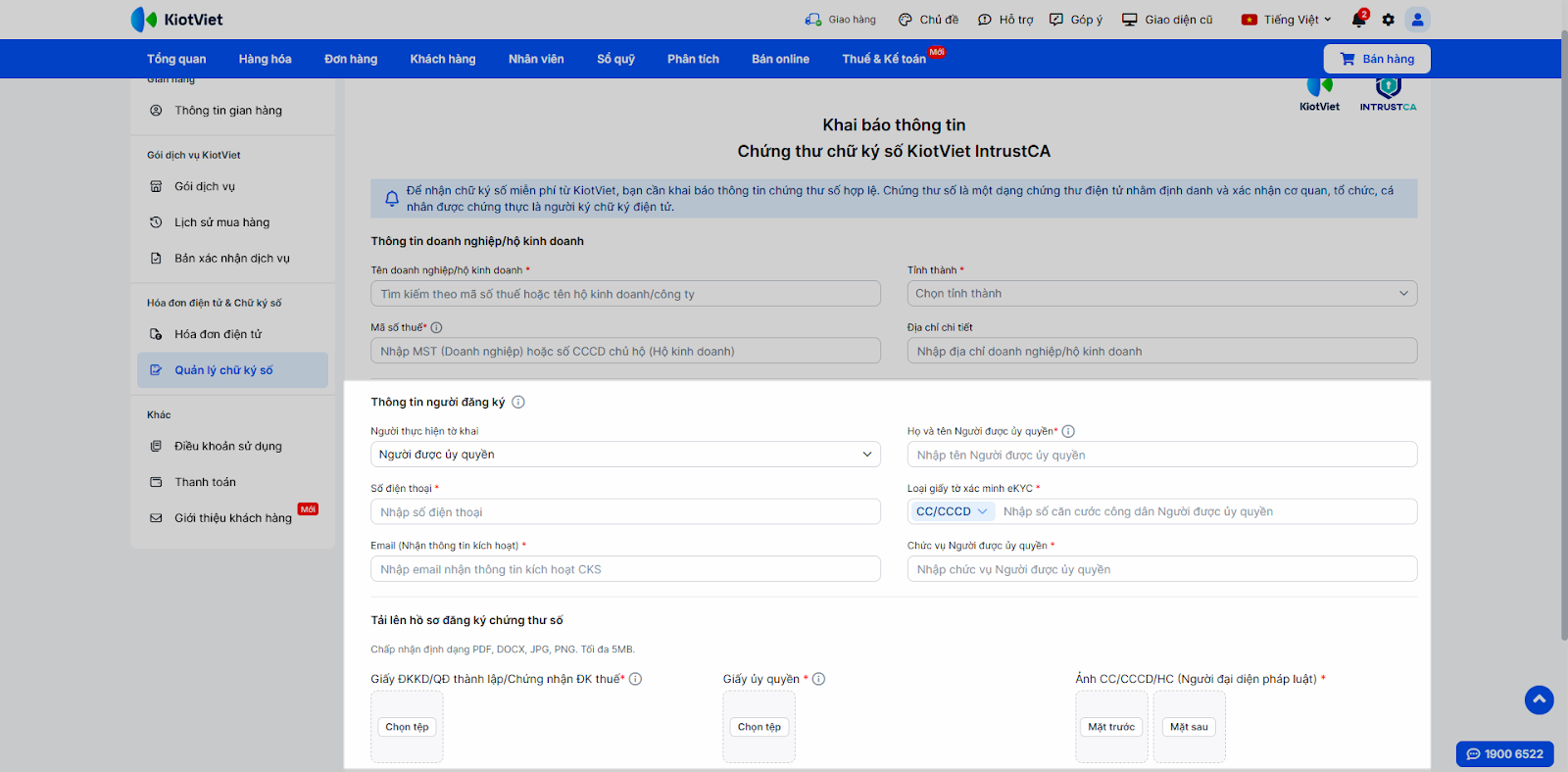 Đăng ký Chữ ký số KiotViet IntrustCA
