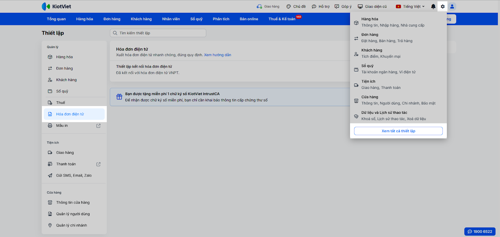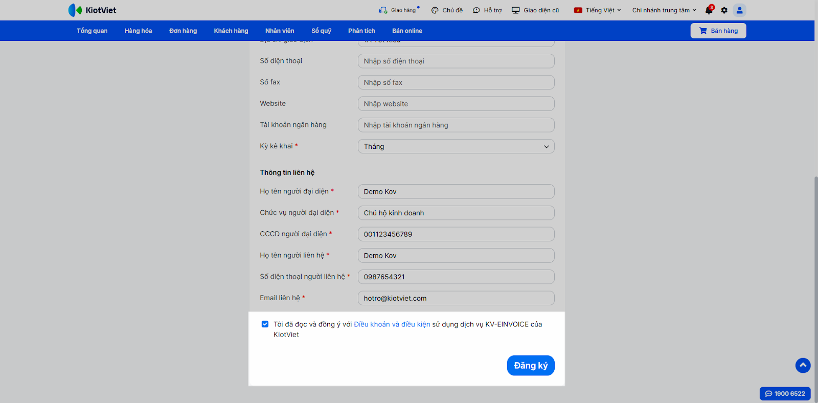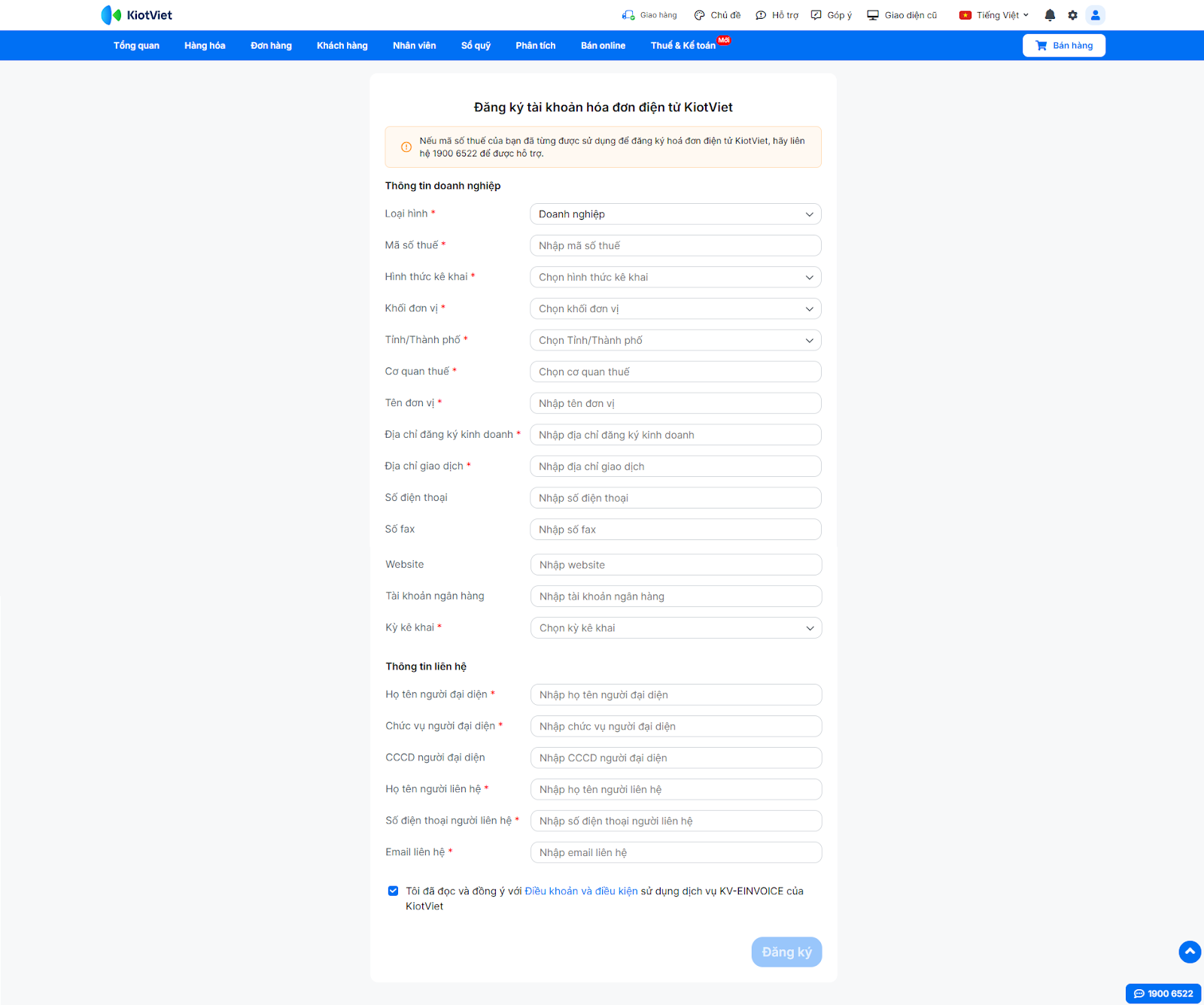 Đăng ký Hóa đơn điện tử KiotViet eInvoice
