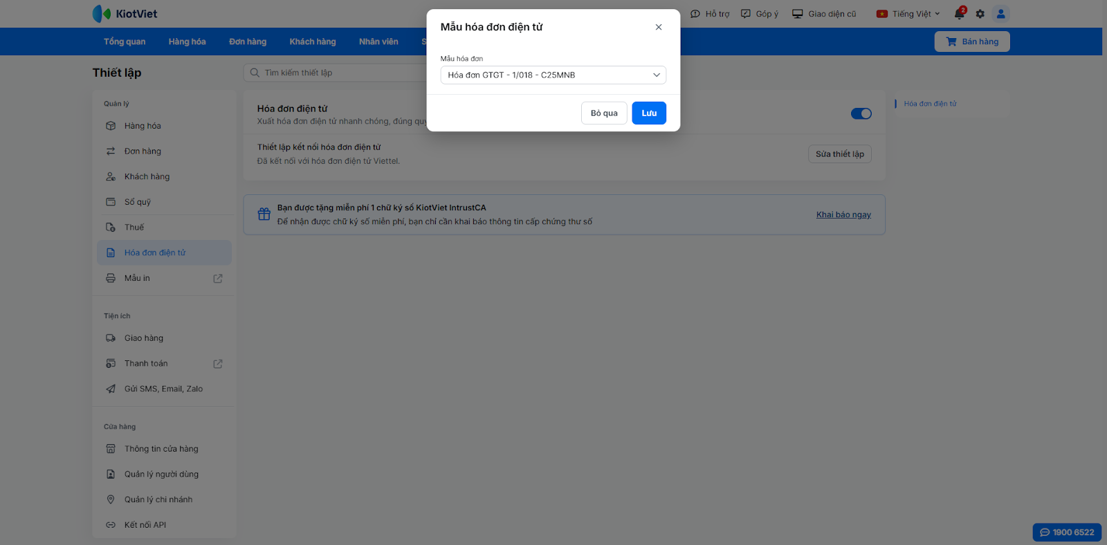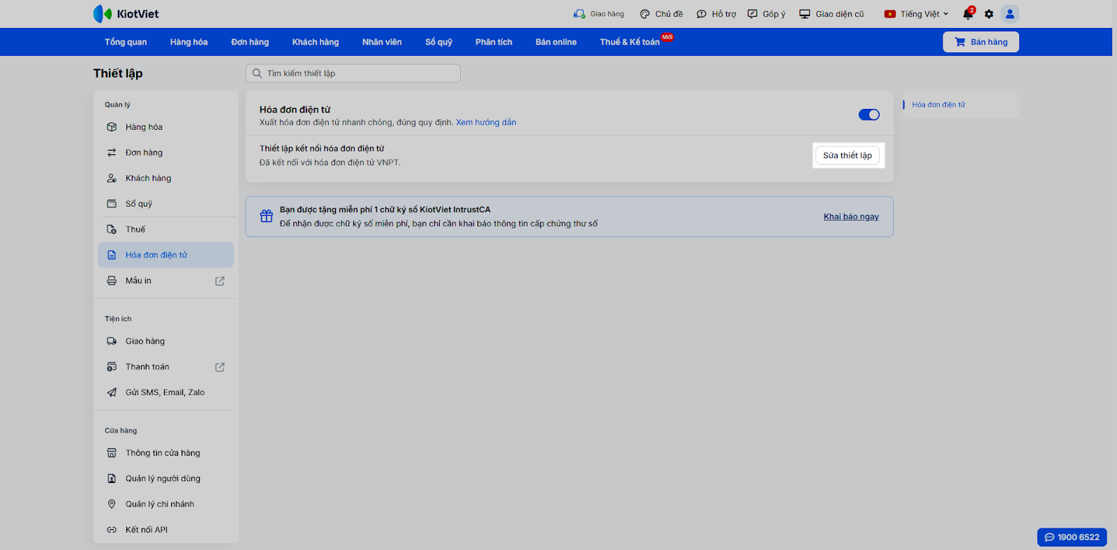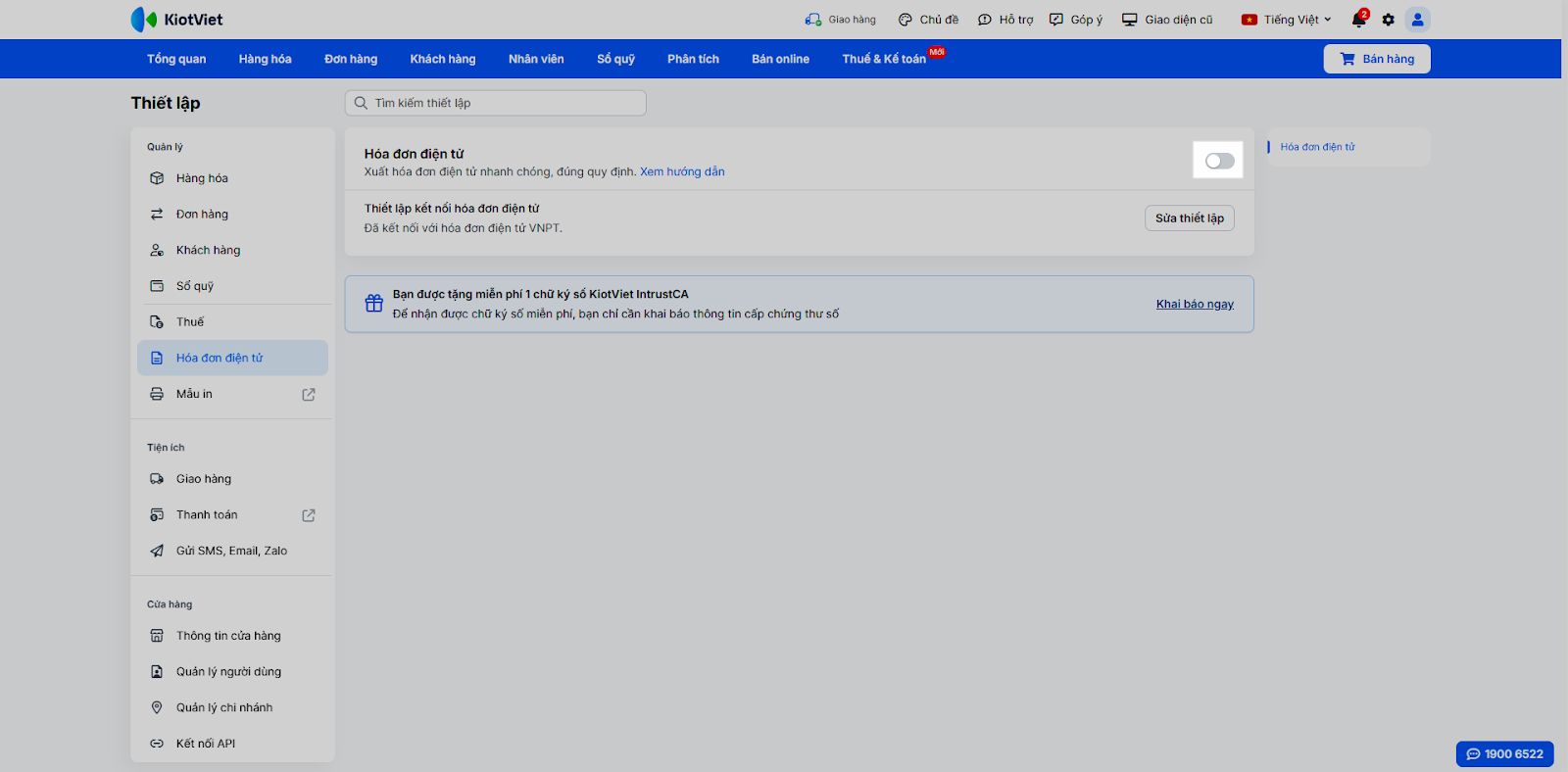 Kết nối với nhà cung cấp hóa đơn điện tử KiotViet (KV-EINVOICE) là giải pháp được tích hợp sâu và toàn diện nhất, được đa số người dùng KiotViet lựa chọn.