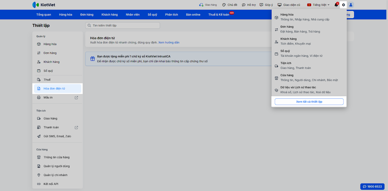 - Bước 3: Bắt đầu sử dụng Hóa đơn điện tử KiotViet