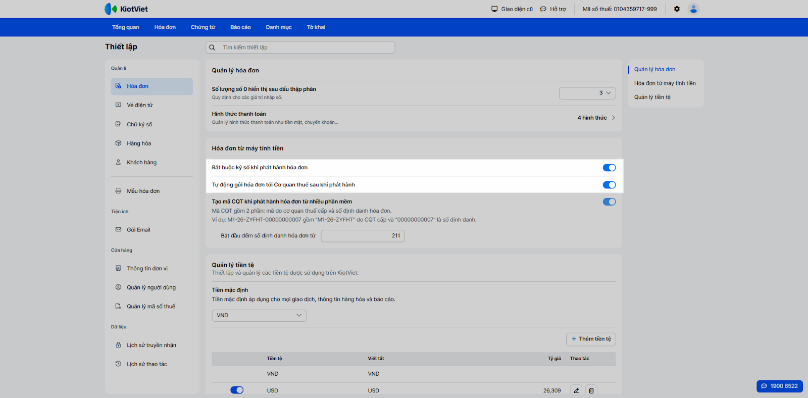- 4. Thiết lập các chế độ ký số và gửi CQT